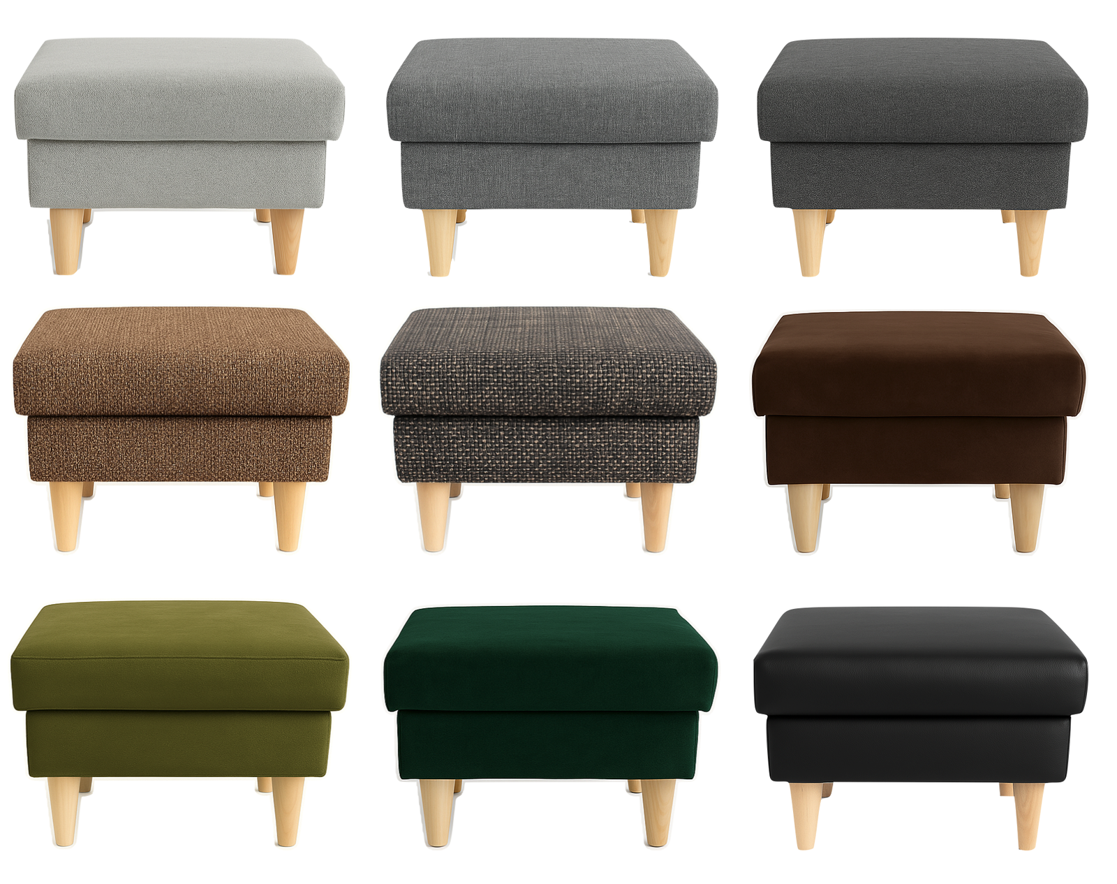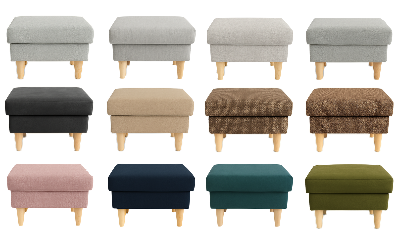 Pufa tapicerowana na drewnianych nóżkach – 18 kolorów do wyboru!