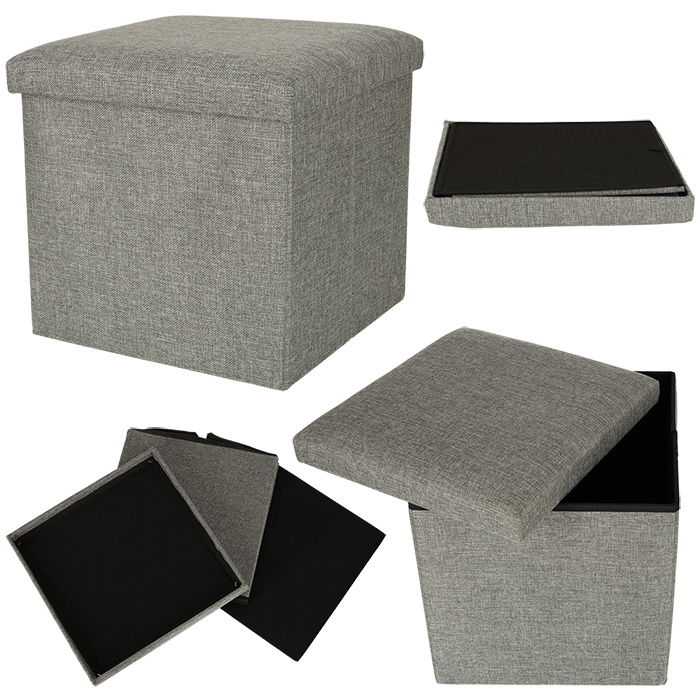 PUFA ZE SCHOWKIEM SKŁADANY PUF DO SIEDZENIA PODNÓŻEK SZARY 38X38X38CM