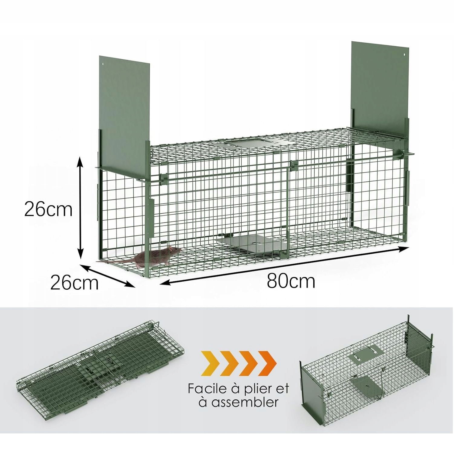 Pułapka na kuny,koty, lisy i szopy, z 2 wejściami, 80x26x26 cm; żywołapka