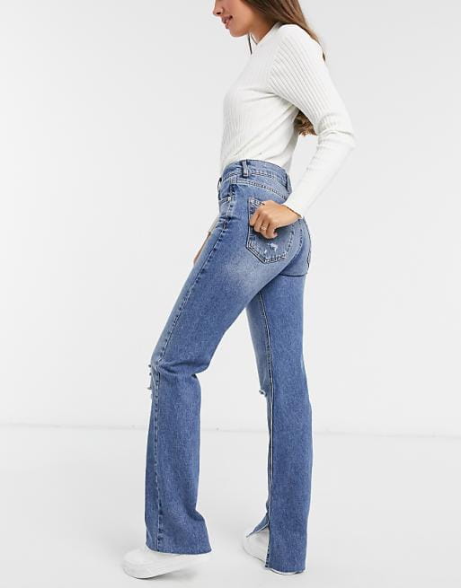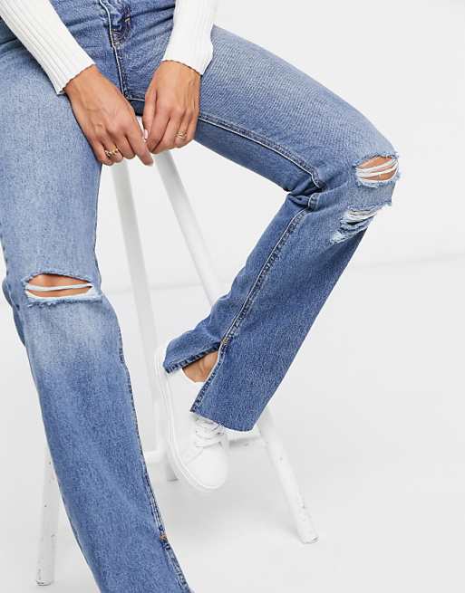 PULL & BEAR Niebieskie jeansy dziury zamek (40)