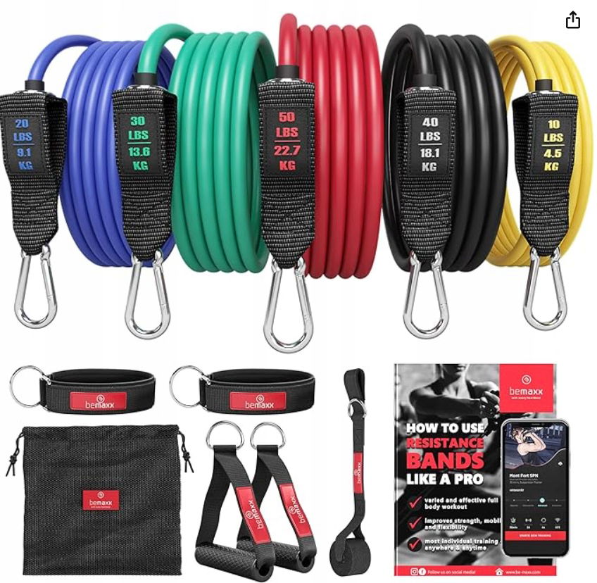 - Zawarte komponenty: Taśmy oporowe w 5 warstwach, uchwyty, paski na kostki, kotwica do drzwi
