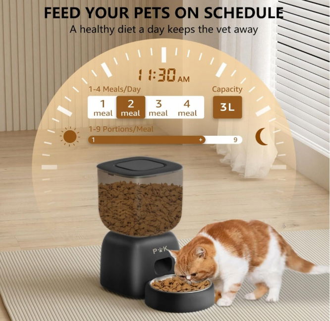 - ✴️【Asystent diety zdrowia】Automatyczny dozownik karmy dla kota PUPPY KITTY jest łatwy w konfiguracji i programowaniu. Można go ustawić na 1-4 posiłki dziennie, każdy posiłek od 0 do 9 porcji (8g±2g na porcję), o pojemności 3 l, aby karmić kota przez pół miesiąca, zapewniając zdrowe i szczęśliwe życie Twojemu pupilowi.