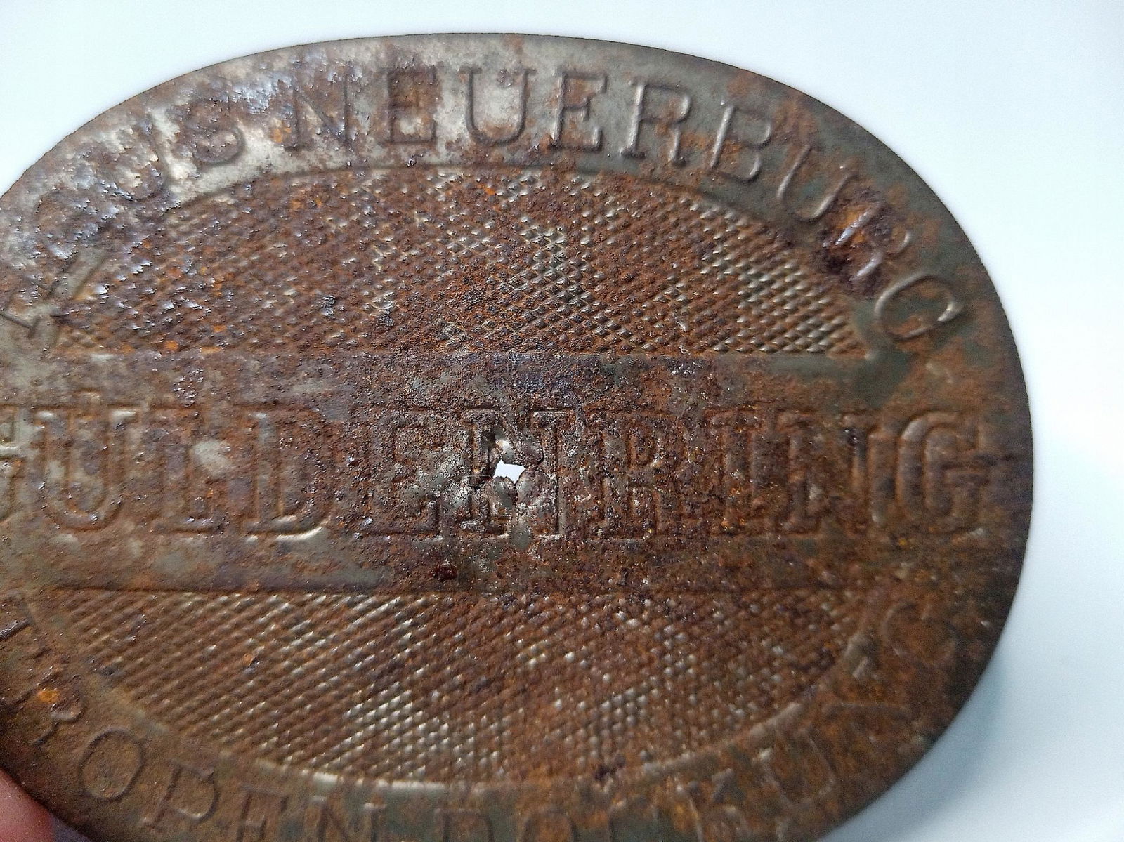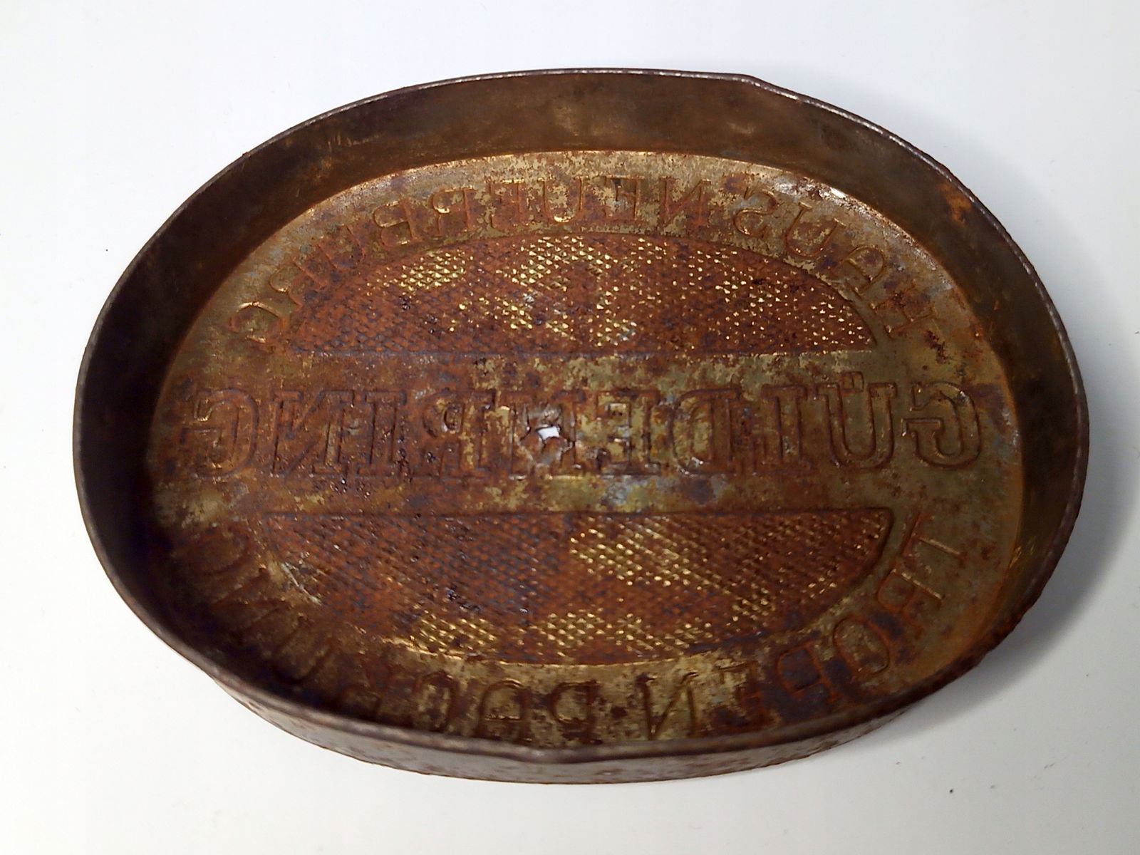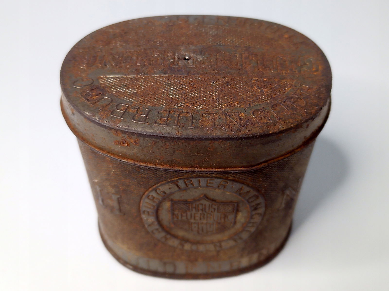 Przedmiot posiada wyraźną korozję oraz zagięcia. Puszka posiada ledwo widoczną dziurkę.Pokrywka ma dziurkę, która już łatwo rzuca się w oczy. Wszystko można zobaczyć na zdjęciach.