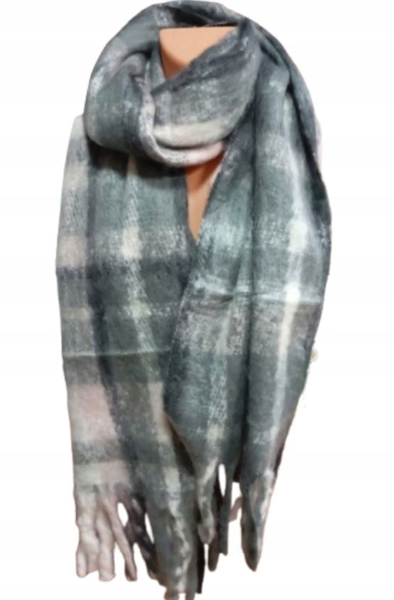 GRUBY, CIEPŁY SZALIK Z FRĘDZLAMI