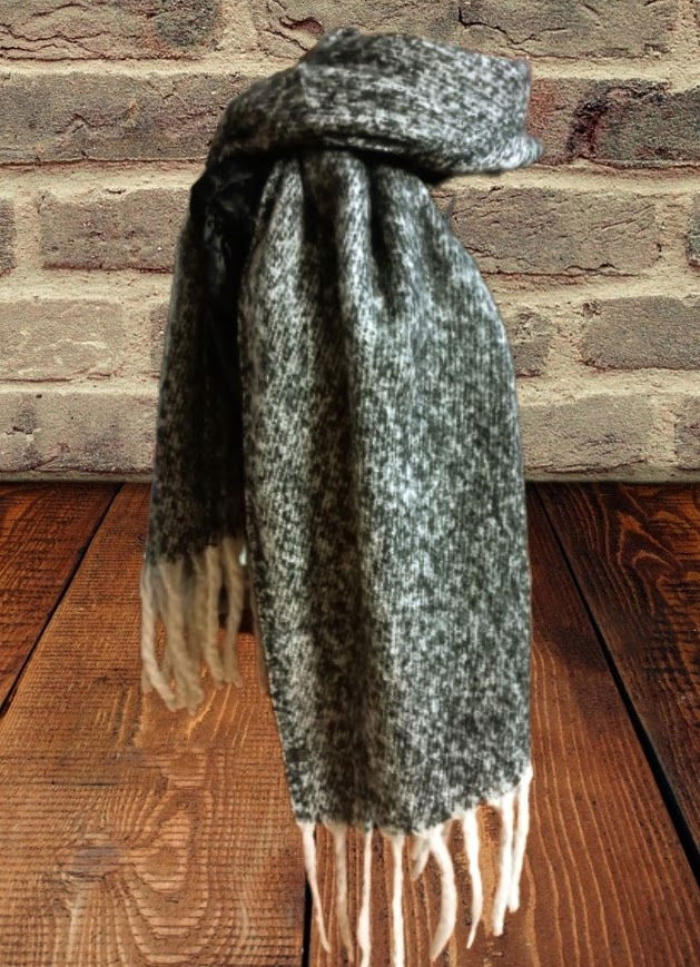 GRUBY, CIEPŁY SZALIK Z FRĘDZLAMI