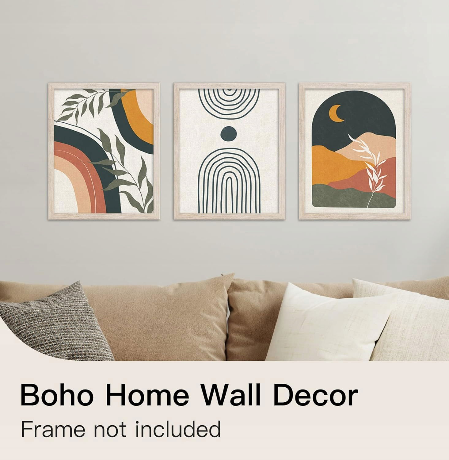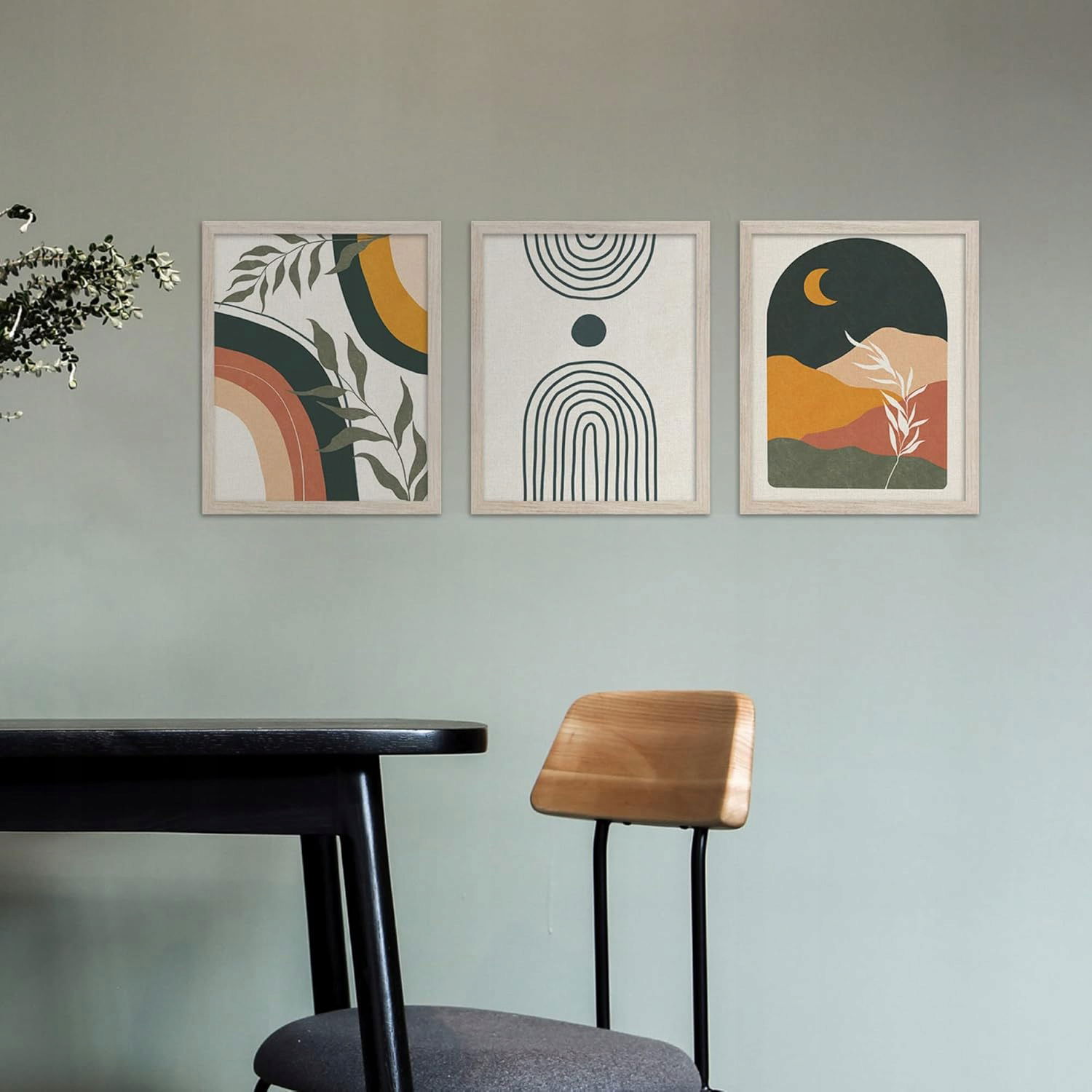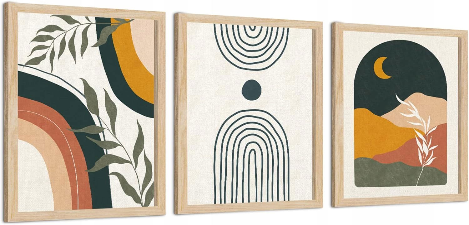 Zestaw 3 obrazów w stylu boho o wymiarach 20,3 x 25,4 cm pasuje na większość ścian. Abstrakcyjne obrazy dodają wyjątkowego uroku i wnoszą powiew świeżości do Twojego domu.