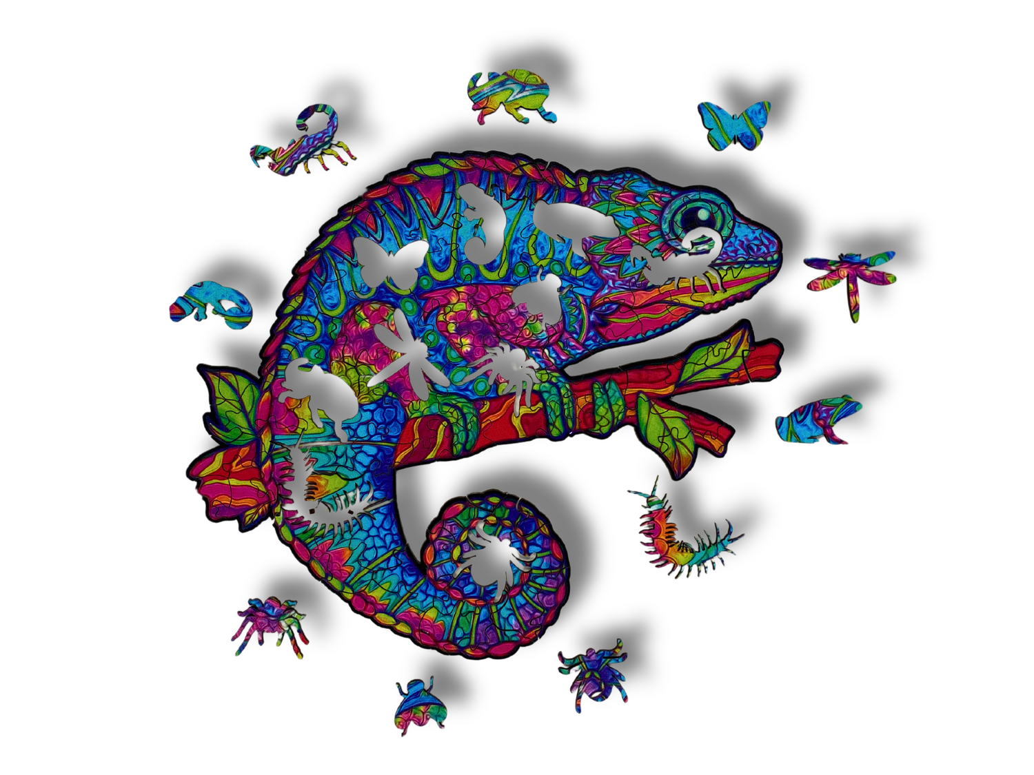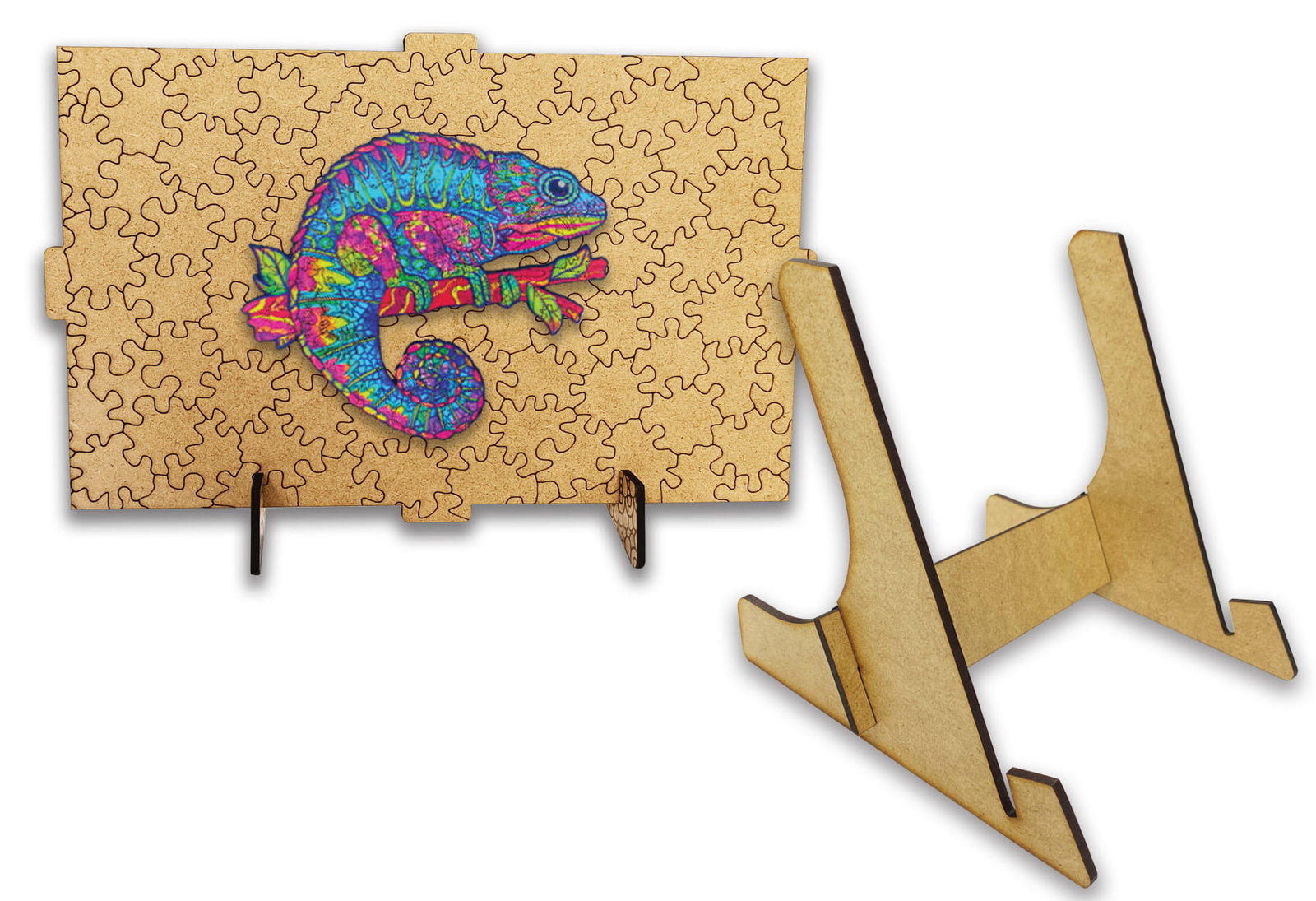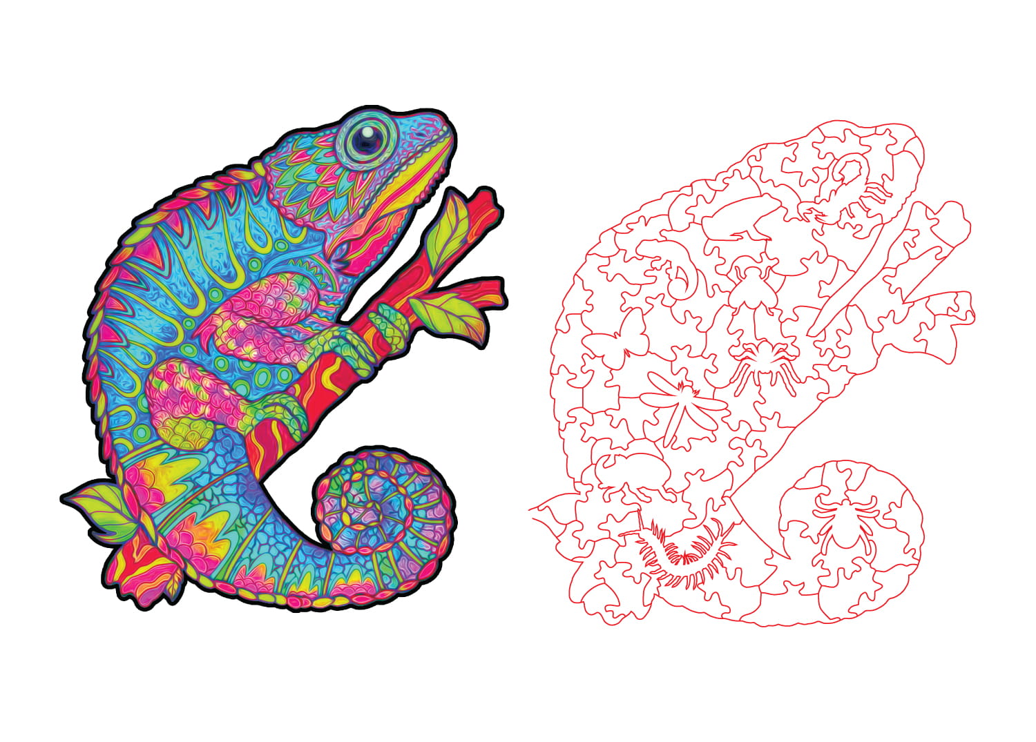 - drewniane puzzle z motywem kameleona 99 elementów