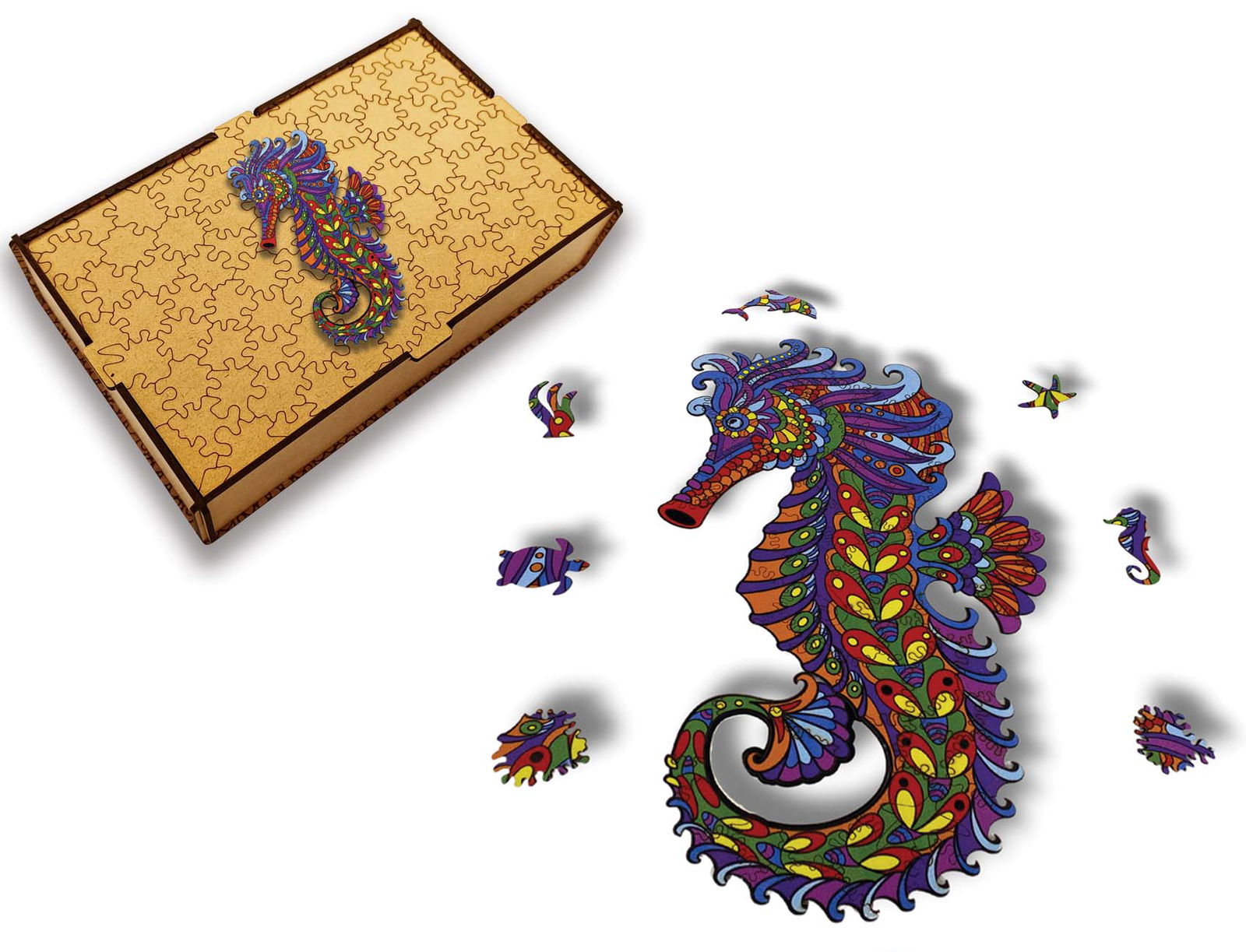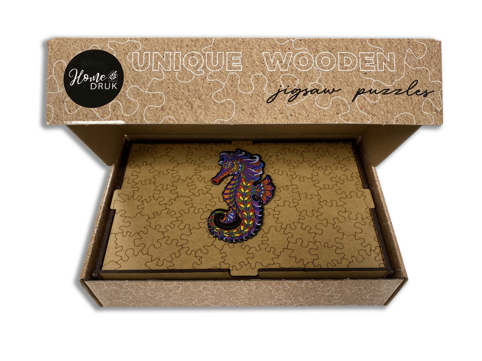 Puzzle Drewniane dla dzieci i dorosłych Konik morski w pudełku drewnianym