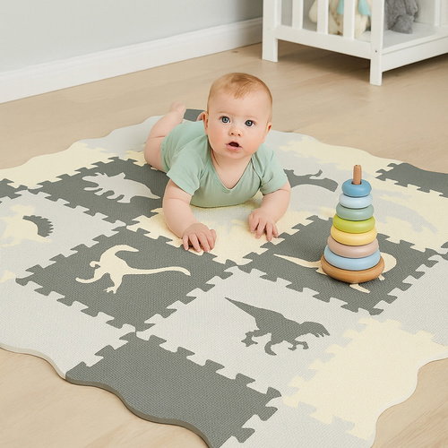 - ochrona przed zimnem i upadkiem – gruba, amortyzująca powierzchnia zapewnia ciepło od podłogi i miękkie lądowanie podczas zabawy.
