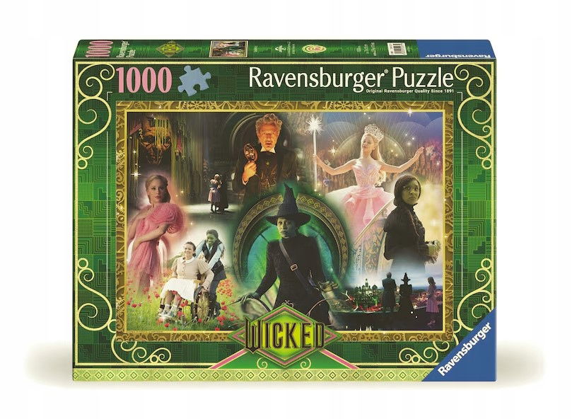 Puzzle Ravensburger z motywem Wicked to świetna propozycja dla miłośników filmów i układanek. Zestaw zawiera 1000 starannie wykonanych elementów, które po ułożeniu tworzą kolorowy obraz o wymiarach około 70×50 cm. Dzięki solidnemu kartonowi i precyzyjnemu cięciu każdy element idealnie pasuje na swoje miejsce. Układanka rozwija koncentrację, cierpliwość i daje dużo satysfakcji – to idealny sposób na relaks po dniu pracy.