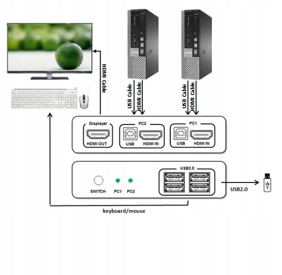 PWAY MODEL PW-S7206H HDMI HDMI KVM SWITCH 2 IN 1 OUT, 2 PORTY