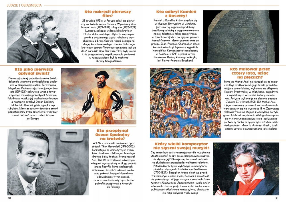 Ciekawość świata to nieodłączna cecha każdego człowieka. Ludzie od zawsze zadawali sobie pytania, a potem szukali na nie odpowiedzi. Właśnie w ten sposób dokonano wielu przełomowych odkryć. Ta publikacja zawiera najbardziej zadziwiające wiadomości dotyczące rozmaitych dziedzin. Podczas lektury dowiesz się m.in.: dlaczego kichamy, kiedy powstał komputer czy kto wynalazł plastik. Może i Ty znajdziesz tu odpowiedzi na nurtujące Cię pytania?