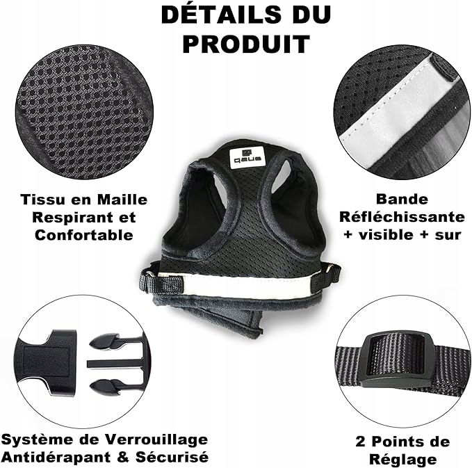 Marka QAUS to produkt specjalnie dostosowany do małych zwierząt, z wyborem kolorów, w kolorze czarnym, niebieskim i szarym, szelki QAUS, zaprojektowany z wysokiej jakości materiałów, a jednocześnie trwały, zmywalny, odblaskowy, łatwy do przenoszenia i wygodny dla Twojego zwierzaka. Nasze zapasy pokazują tylko małe rozmiary S-XS (klatka piersiowa: 37-40 cm, szyja 23-25cm). Aby sprawdzić, czy ta uprząż jest dla Ciebie odpowiednia, możesz zmierzyć wokół szyi i klatki piersiowej psa