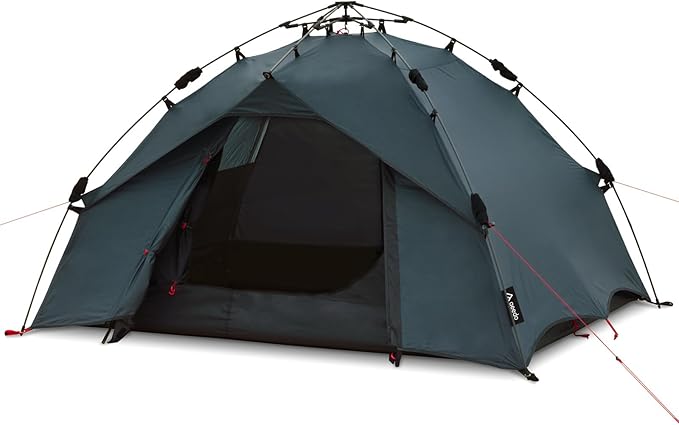 Namiot kempingowy dla 2 osób z systemem Quick-Up (szybki montaż) – namiot dwuosobowy lekki i wodoszczelny, wejście z moskitierą i małym zadaszeniem – namiot kopułowy z szybkim montażem
