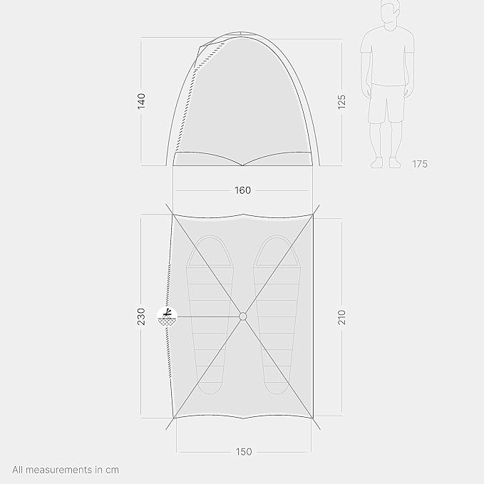 Namiot 2-osobowy (210 x 150 cm), zadaszenie dachowe (do przechowywania wartościowych przedmiotów)