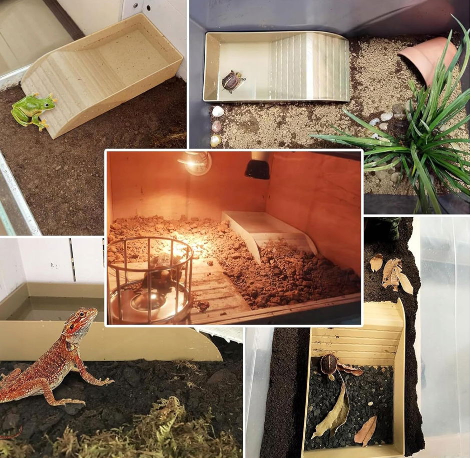 - ✴️Wszechstronne zastosowanie: miska na wodę z rampami może być używana do kąpieli gadów, jako platforma do opalania i siedliska dla gadów, może być również używana jako miska na karmę lub wodę. Idealne rozwiązanie dla wielu gadów, takich jak żółwie, rogate, żaby, jaszczurki itp