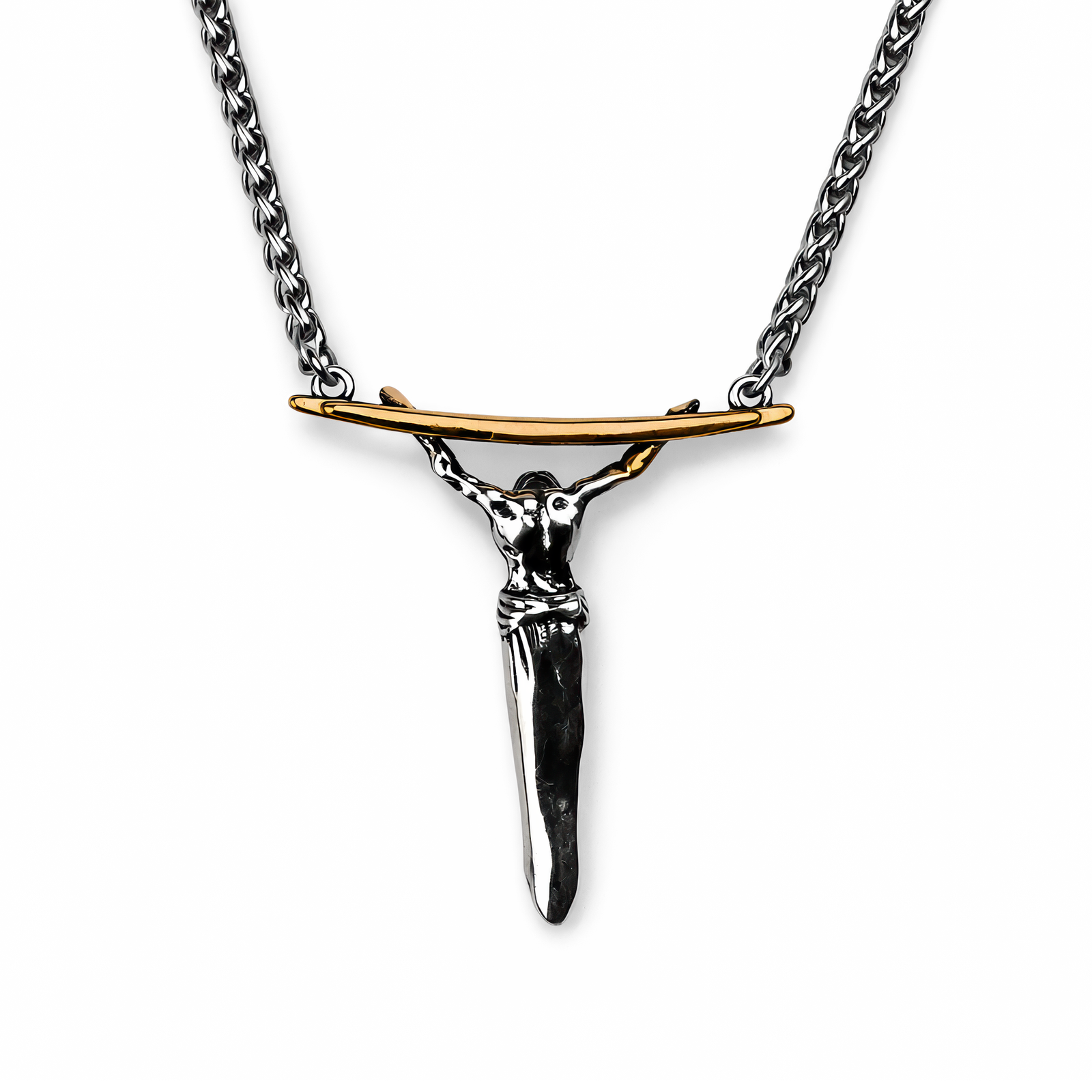 Ten 4 cm Metal Brelok Zawieszka ma mocny, dwukolorowy look: lustrzanie błyszczącą, srebrną postać zawieszoną na ciepłej, złotej poprzeczce. Rzeźbienie jest wyraziste i „czytelne” — długie włosy, zarys sylwetki oraz udrapowana tkanina w pasie, wszystko w połyskliwym, wypukłym reliefie, który łapie światło jak polerowana stal. Poprzeczka ma delikatne, segmentowe żłobienia, przez co wygląda jak rytualny artefakt, a skręcane, plecionkowe ogniwa łańcuszka dodają całości surowej elegancji. Metaliczny połysk świetnie kontrastuje ze skórą, dżinsem i płótnem, więc robi efekt na kurtce, plecaku i tablicy kolekcjonerskiej. Zawieś ją przy kluczach albo torbie, albo noś na łańcuszku — sylwetka nawiązuje do tej poważnej, „sakralnej” estetyki znanej z gry, bez wchodzenia w spoilery. Niech dołączy do Twojego ekwipunku — gotowa na miejsce w kolekcji albo jako prezent dla innego Tarnished.