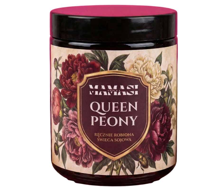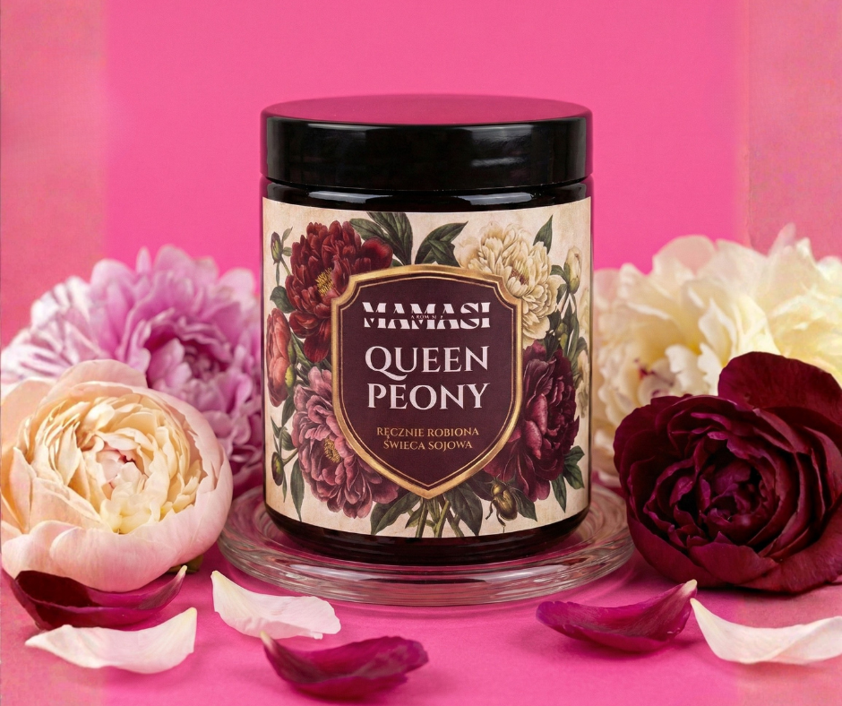 Ręcznie Robiona Świeca Sojowa Mamasi "Queen Peony" – Królewski Ogród (180ml)