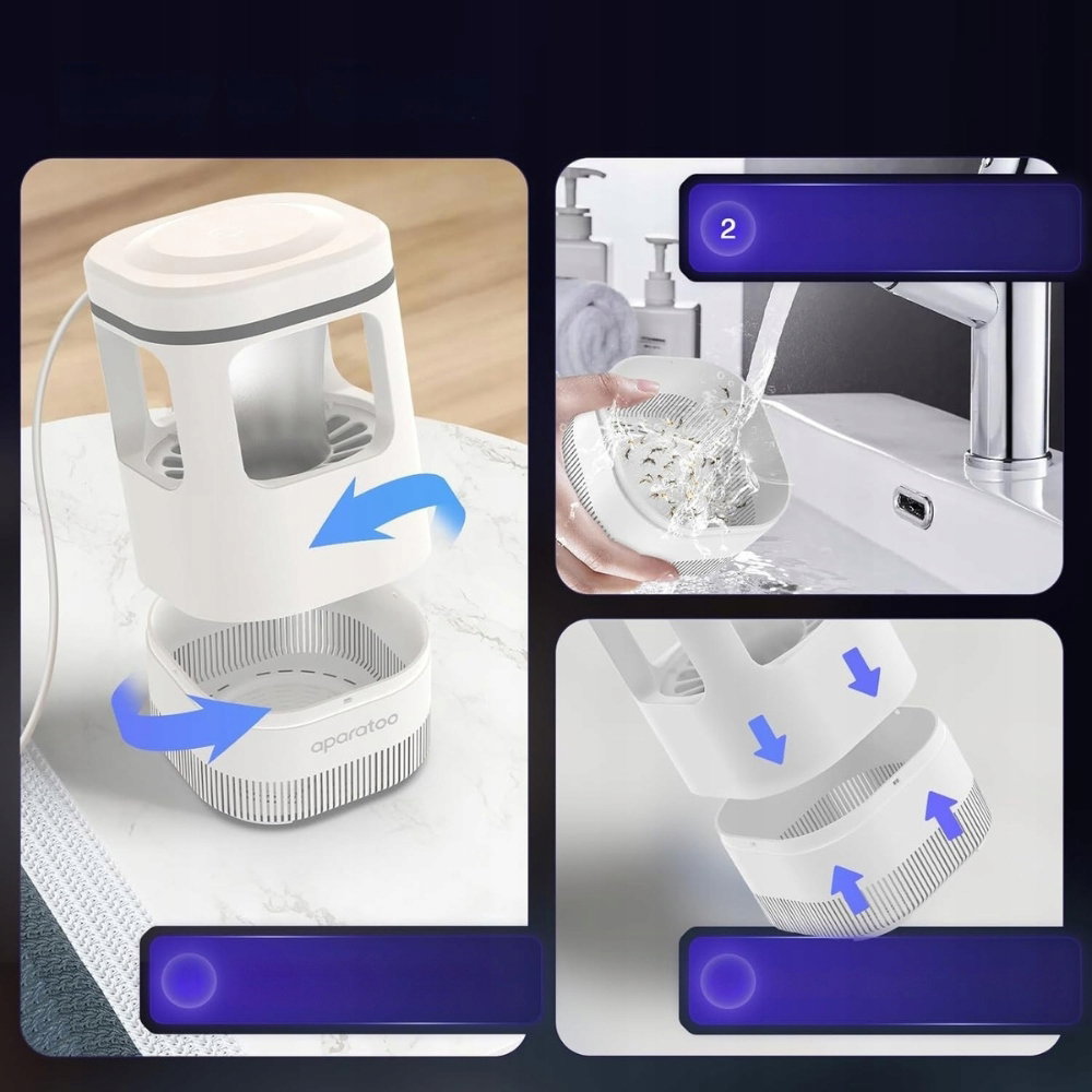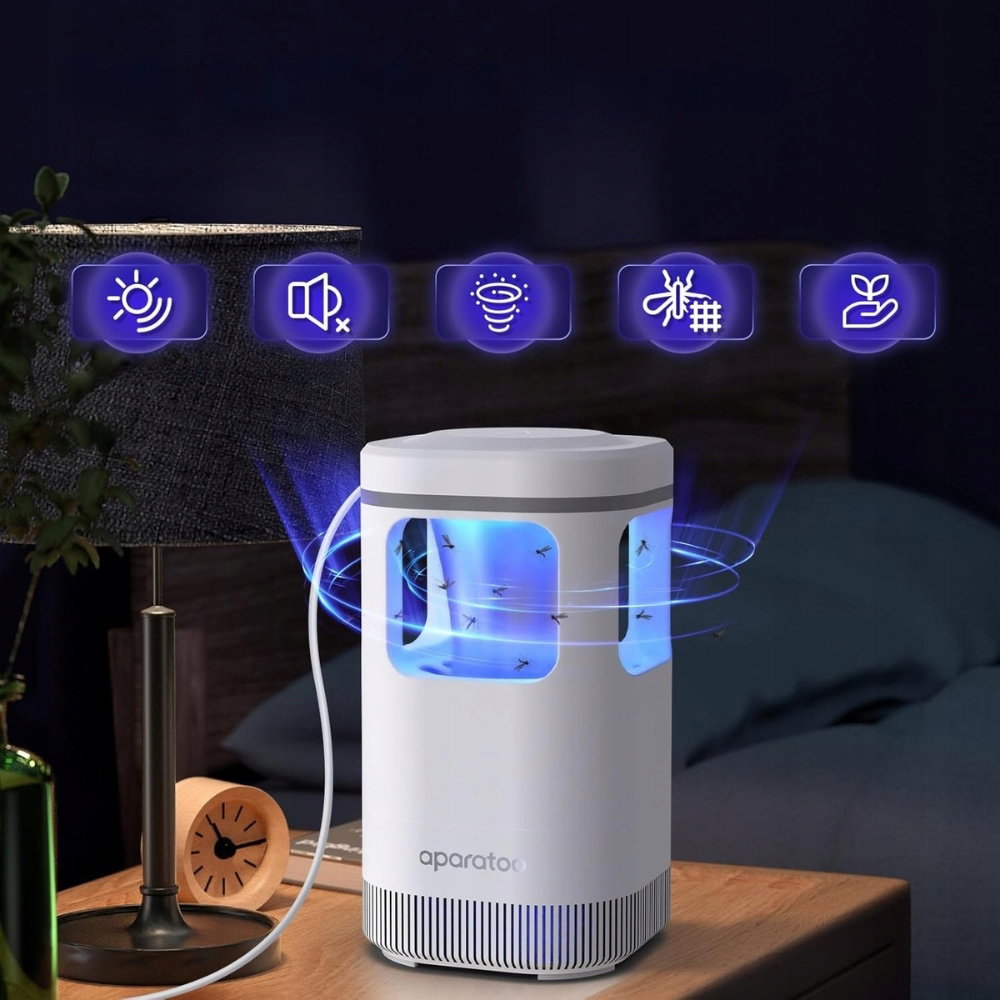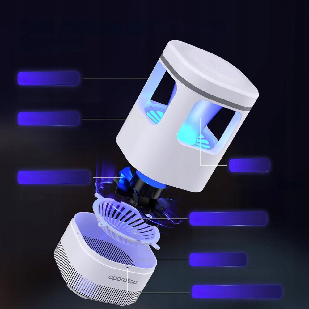 Dzięki innowacyjnej technologii bionicznego ciepła ciała i światłu UV o długości fali 365 nm, urządzenie precyzyjnie przyciąga komary oraz inne owady latające. Potężna turbina ssąca natychmiast zasysa je do pojemnika, gdzie są naturalnie suszone na powietrzu, co zapewnia higieniczne i bezpieczne usuwanie owadów.