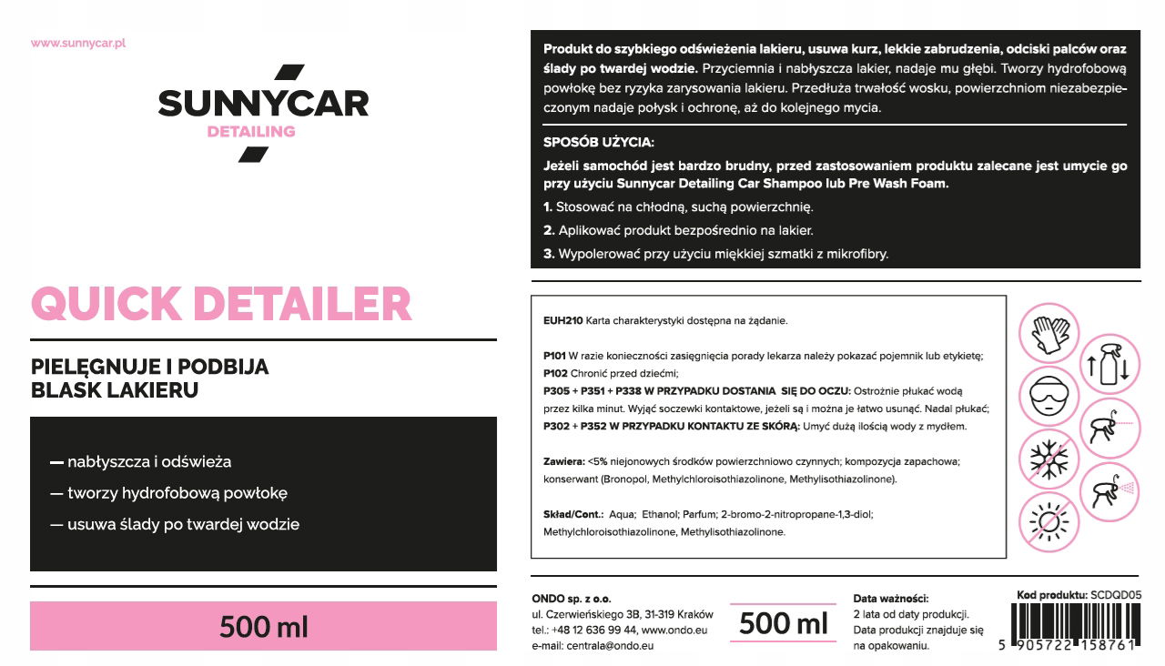 ⭐️ SUNNYCAR DETAILING QUICK DETAILER 500 ml – Szybkie odświeżenie i spektakularny blask lakieru!