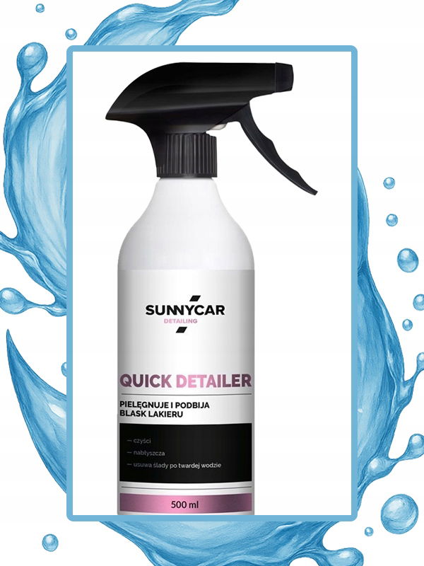 ☑️ Aby utrzymać efekt pielęgnacji lakieru uzyskany dzięki woskom i innym produktom detailingowym, warto regularnie sięgać po Sunnycar Quick Detailer. Świetnie sprawdza się do usuwania śladów po wodzie, lekkich zabrudzeń czy pyłu powstałego po kilku dniach użytkowania auta.
