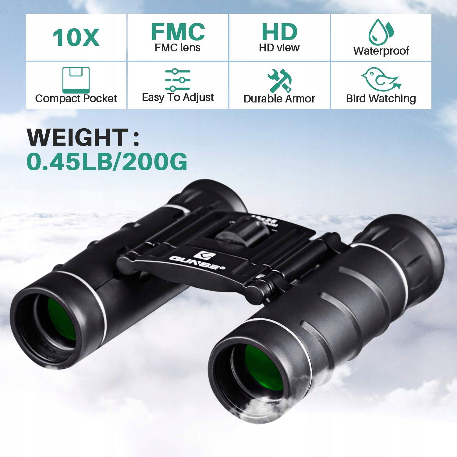 QUNSE Lornetka 10x25 Kompaktowa Odporna Na Deszcz Dla Dzieci Dorosłych