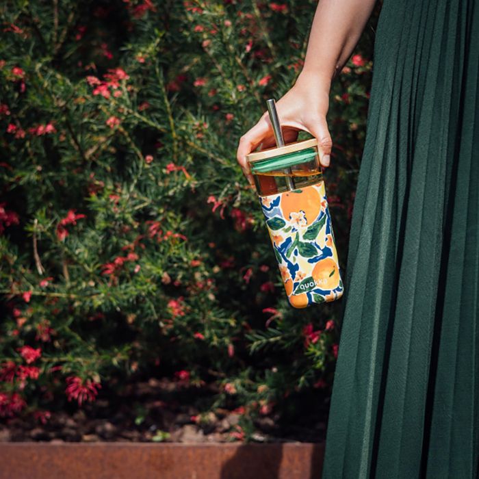 Quokka Liquid Cube - Kubek szklany 540 ml ze somka ze stali nierdz...