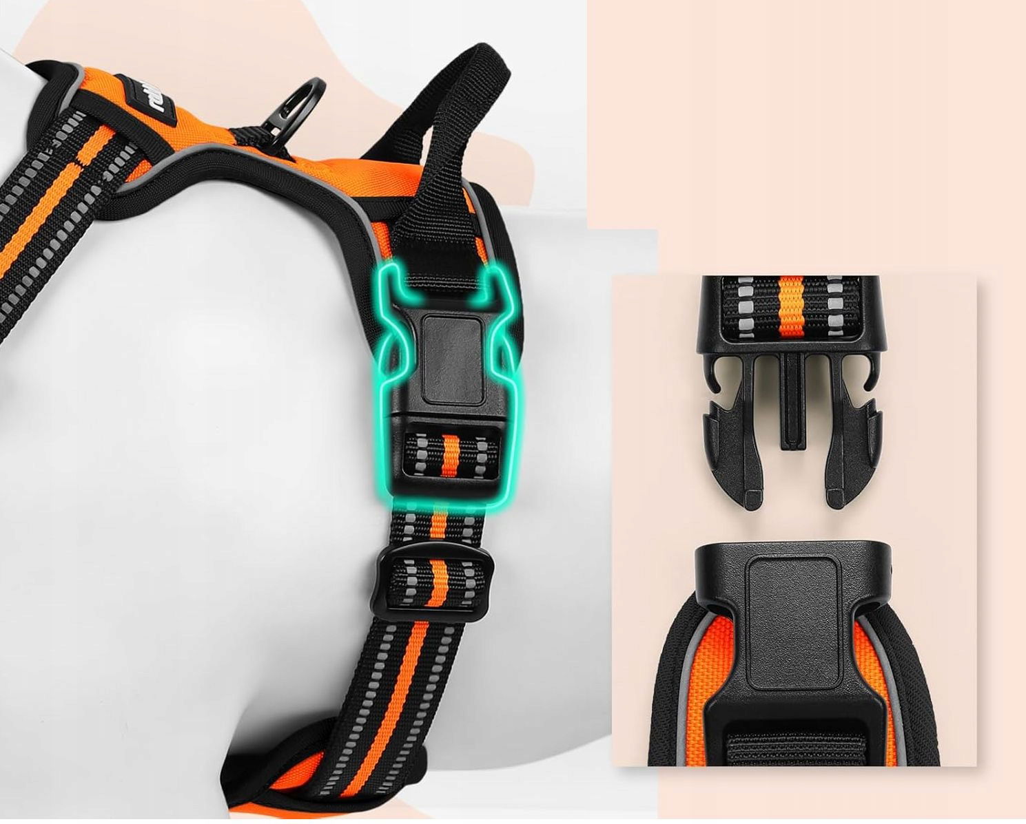 Idealne dopasowanie - uprząż ma 4 łatwe do regulacji paski wokół ciała. Możesz użyć 2 pasków na szyję i 2 pasków na klatkę piersiową, aby stworzyć idealne dopasowanie dla swojego psa z pewną przestrzenią wzrostu.
