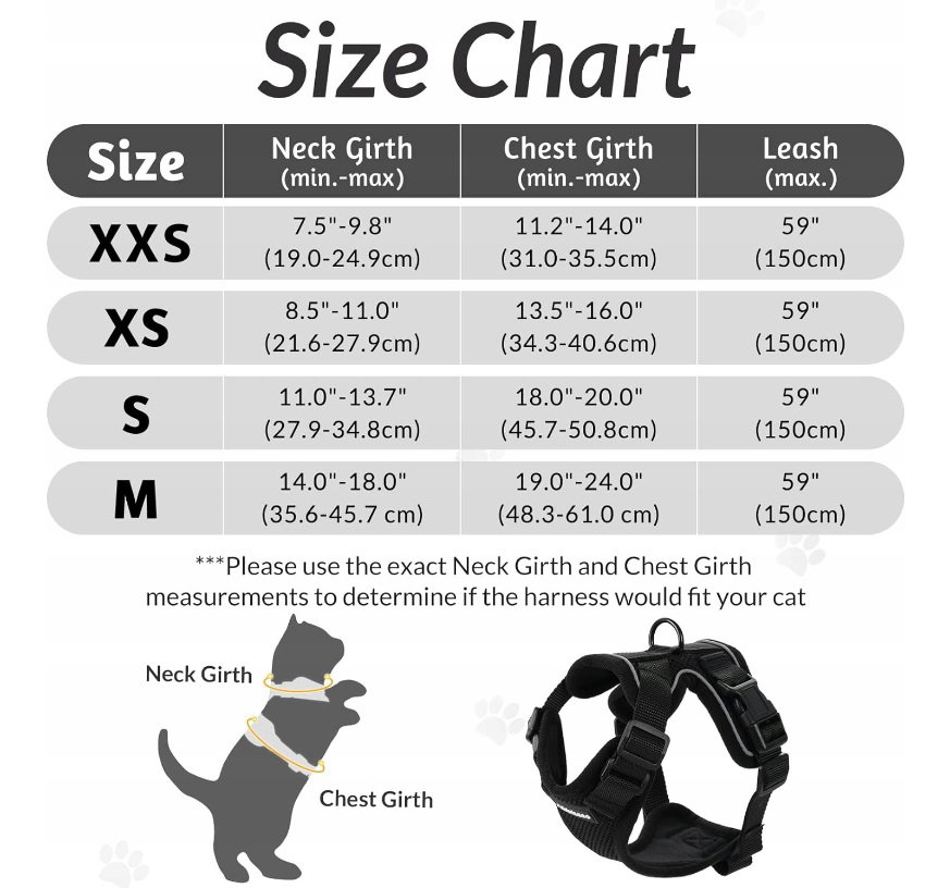 Proszę zmierzyć rozmiar szyi i klatki piersiowej kota blisko sierści i dodać 2-3 cm do tego wymiaru