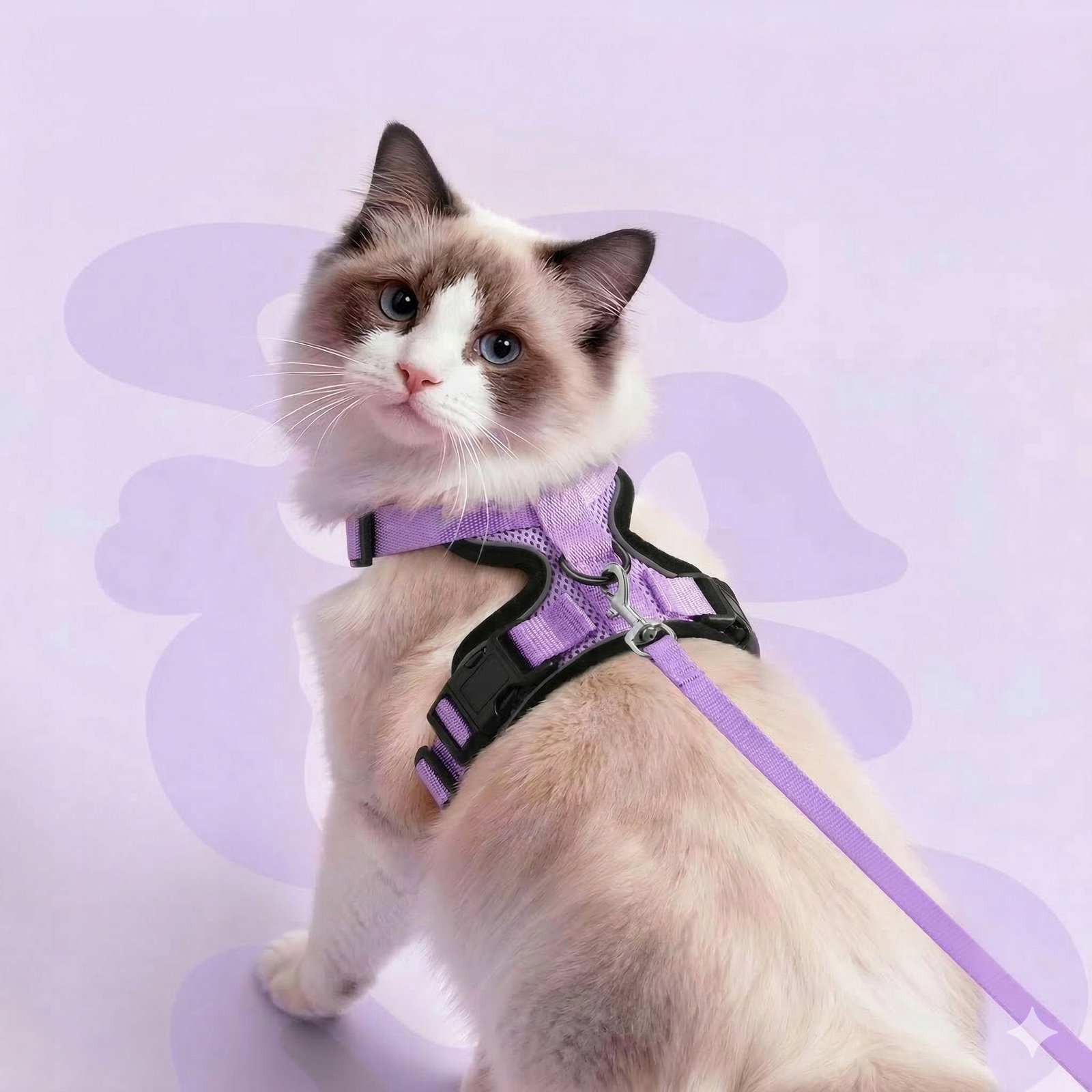 Bezpieczna i wytrzymała konstrukcja – szelki są solidne i odporne na rozciąganie, co gwarantuje bezpieczeństwo nawet dla najbardziej energicznych kotów.