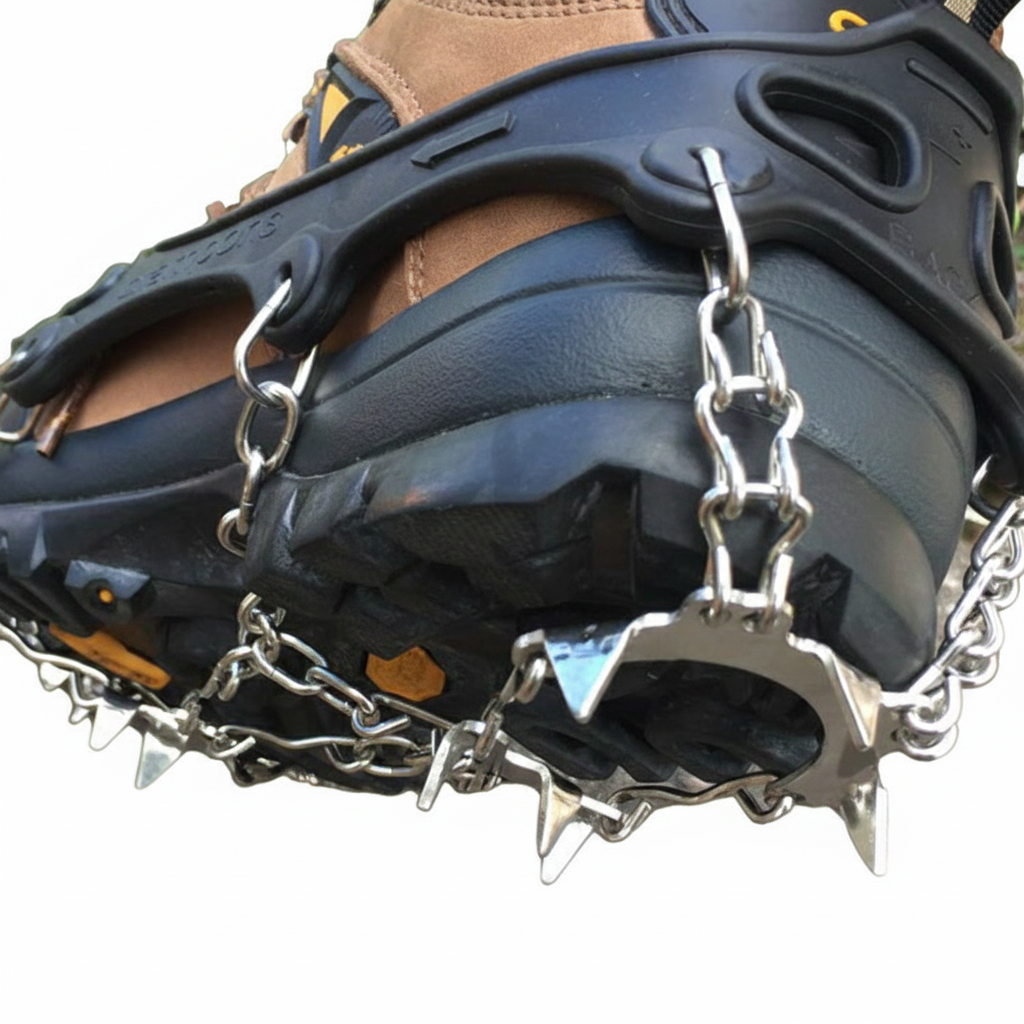 Ten model to pewność i stabilność na każdym zimowym podłożu 19 stalowych kolców w każdym bucie gwarantuje maksymalną przyczepność, niezależnie od tego, czy idziesz po oblodzonym chodniku, śliskiej ścieżce czy twardym zlodzonym śniegu.