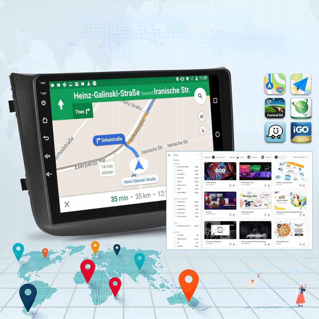 - GPS i Wi-Fi: po połączeniu z Wi-Fi możliwe jest pobieranie map offline lub korzystanie z map online. Nawigacja offline zapewnia precyzyjne prowadzenie nawet przy słabym zasięgu sieci. Dostęp do App Store umożliwia instalowanie aplikacji i stałe pozostawanie online.