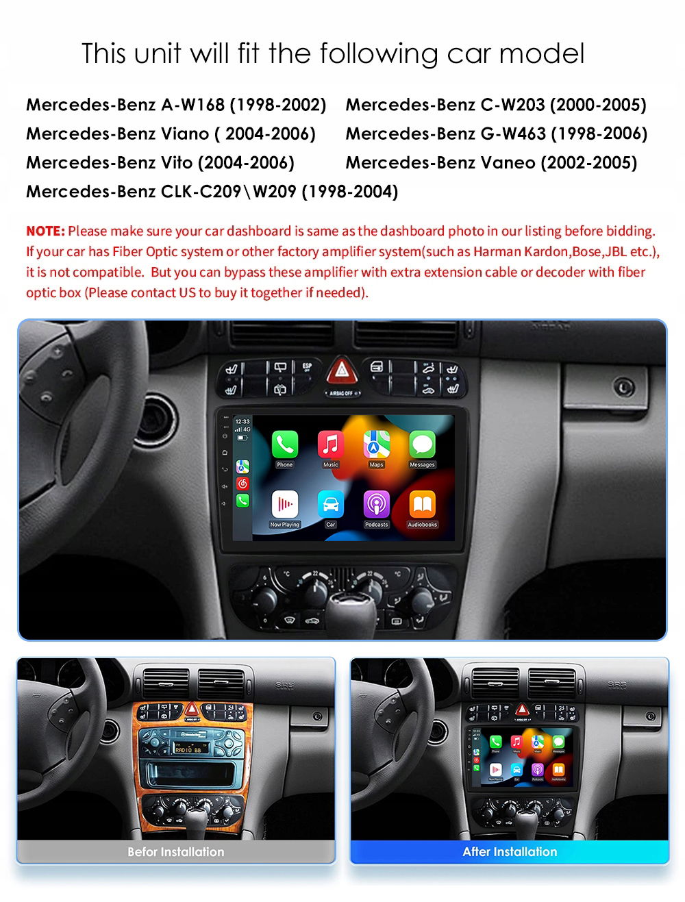 Radio Android Benz A W168 C W203 G W463 Vaneo Vito Viano CLK Class C209