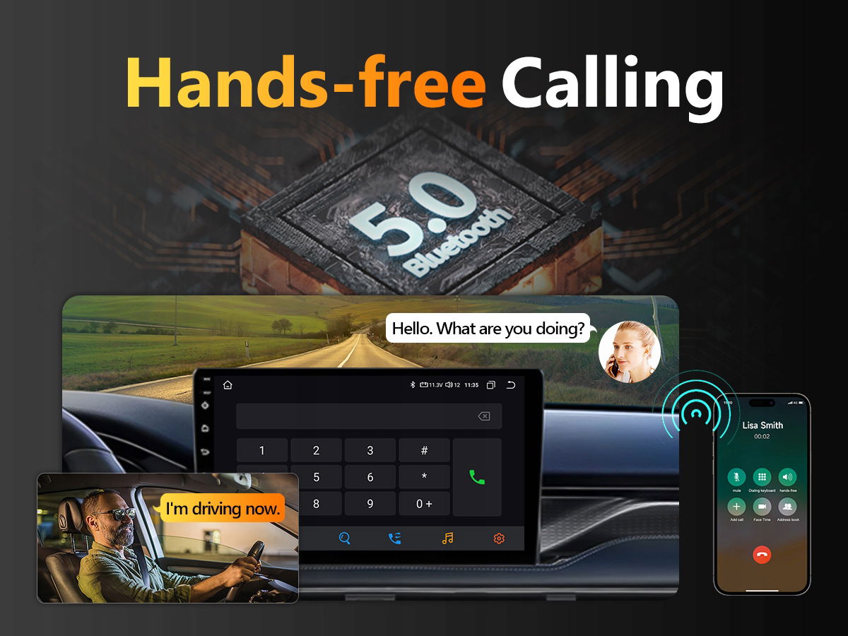 Radio posiada wbudowaną funkcję Bluetooth, która umożliwia wykonywanie połączeń podczas jazdy.Głośnik pozwala słyszeć dźwięk z telefonu komórkowego, a wbudowany mikrofon umożliwia wykonywanie połączeń bez odrywania rąk od kierownicy.