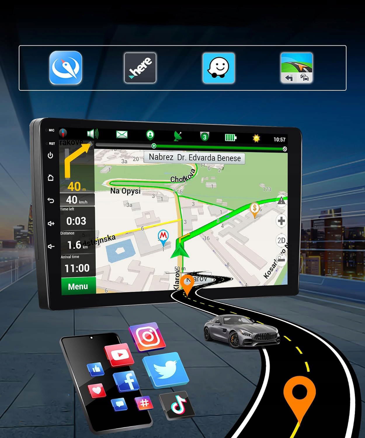 ✔ Nawigacja GPS + WiFi – korzystaj z map offline lub online (Here We Go, Waze)