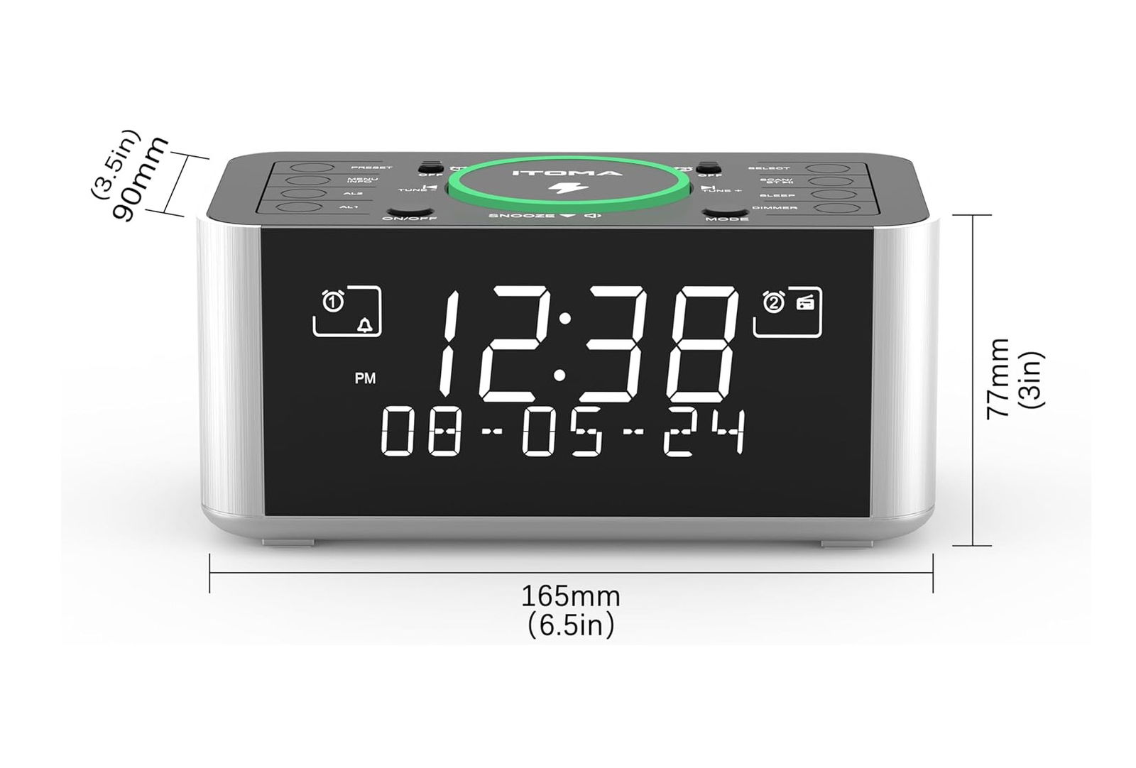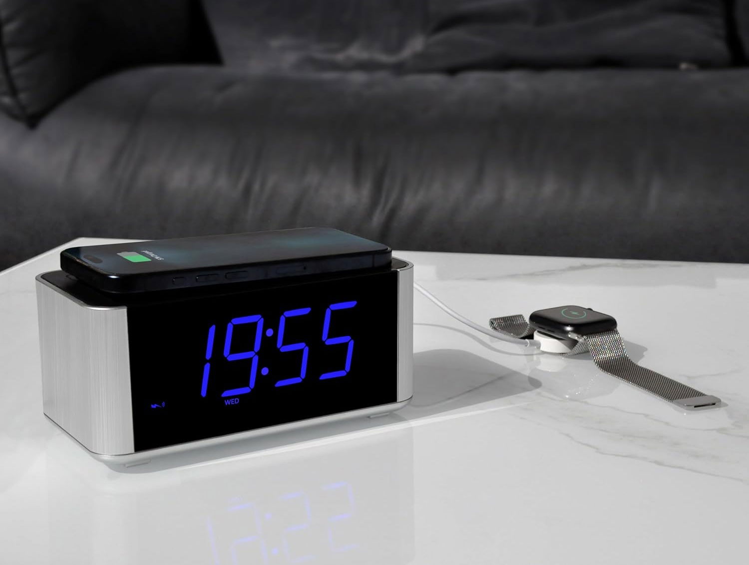 Radio budzik z funkcją ładowania smartfona Bluetooth LED