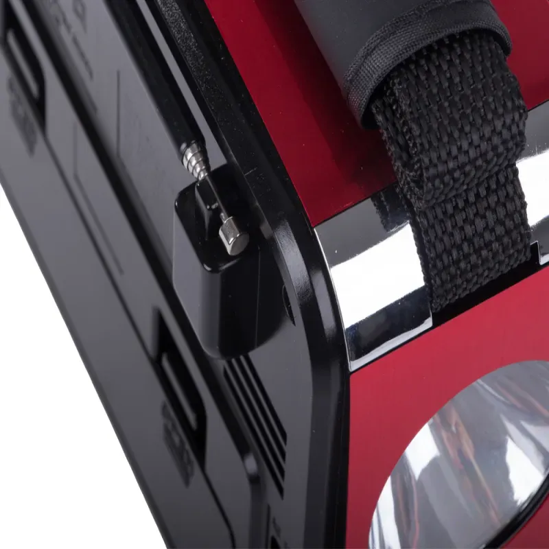 Na boku urządzenia znajduje się latarka LED, która świetnie sprawdza się w domu podczas awarii prądu, na biwaku lub w ciemnym otoczeniu.