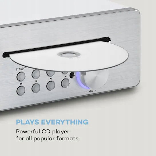 Wbudowany odtwarzacz CD odtwarza najbardziej najpopularniejsze formaty i zachwyca łatwością obsługi