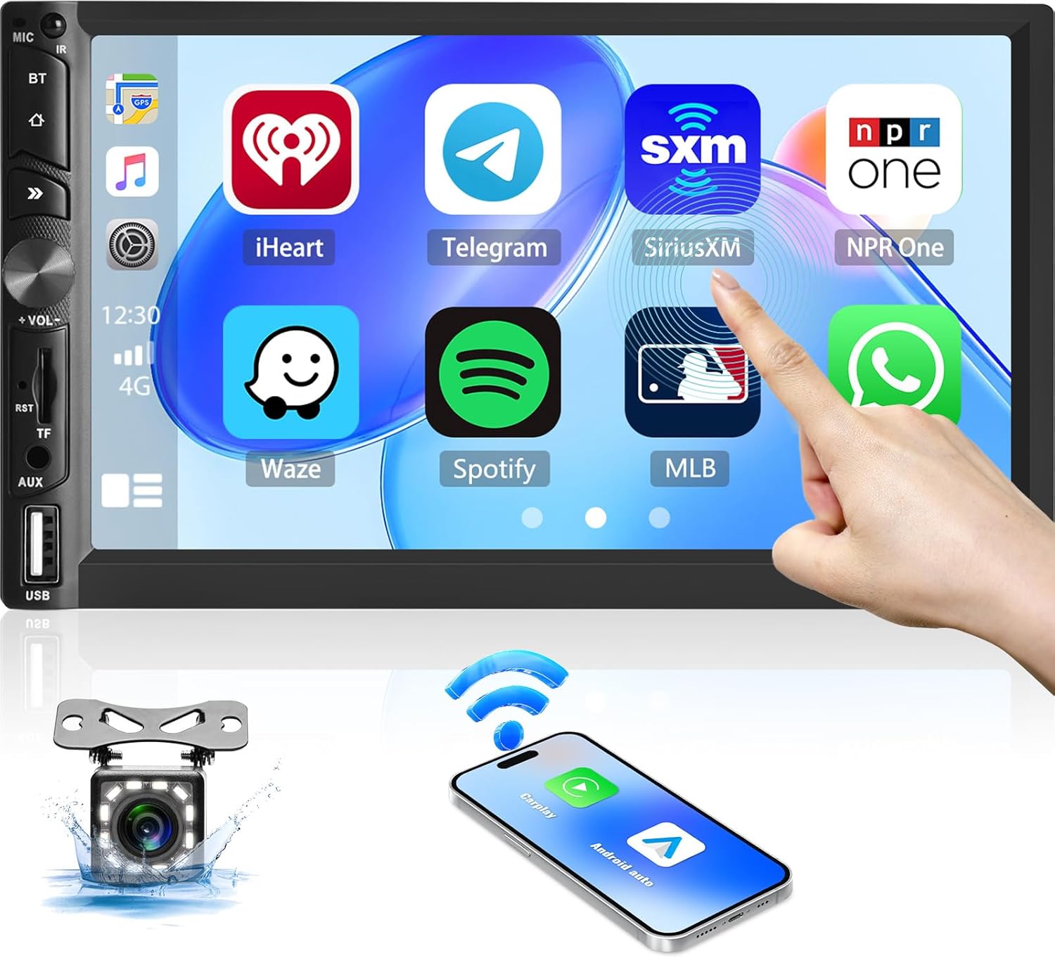 - Kompatybilny z Apple Carplay i statusem sterowania głosem AI: radio obsługuje zarówno bezprzewodową, jak i przewodową funkcję CarPlay oraz Android Auto, bez konieczności użycia kabla USB. Dzięki najnowszej technologii sterowania głosowego możliwe jest aktywowanie asystenta głosowego Siri lub Google do wykonywania połączeń telefonicznych, odtwarzania muzyki, wysyłania i odbierania wiadomości, korzystania z nawigacji GPS oraz innych funkcji.