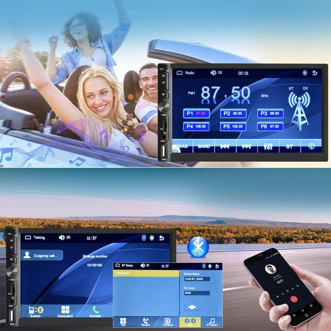 Radio samochodowe Camecho to nowoczesne urządzenie multimedialne wyposażone w 7-calowy pojemnościowy ekran o wysokiej rozdzielczości, umożliwiające wygodne korzystanie z funkcji multimedialnych podczas jazdy.
