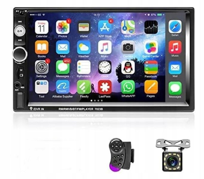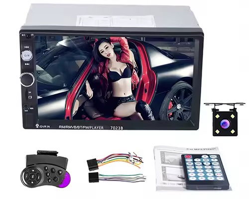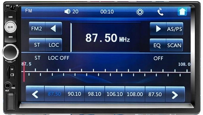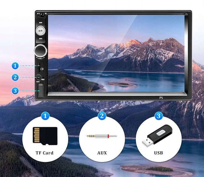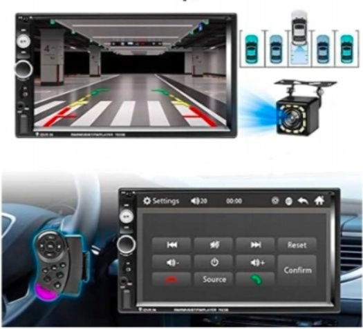 samochodowy odtwarzacz stereo MP5 z wbudowanym modułem Bluetooth i mikrofonem umożliwiającym wykonywanie połączeń i odbieranie połączeń bez użycia rąk.