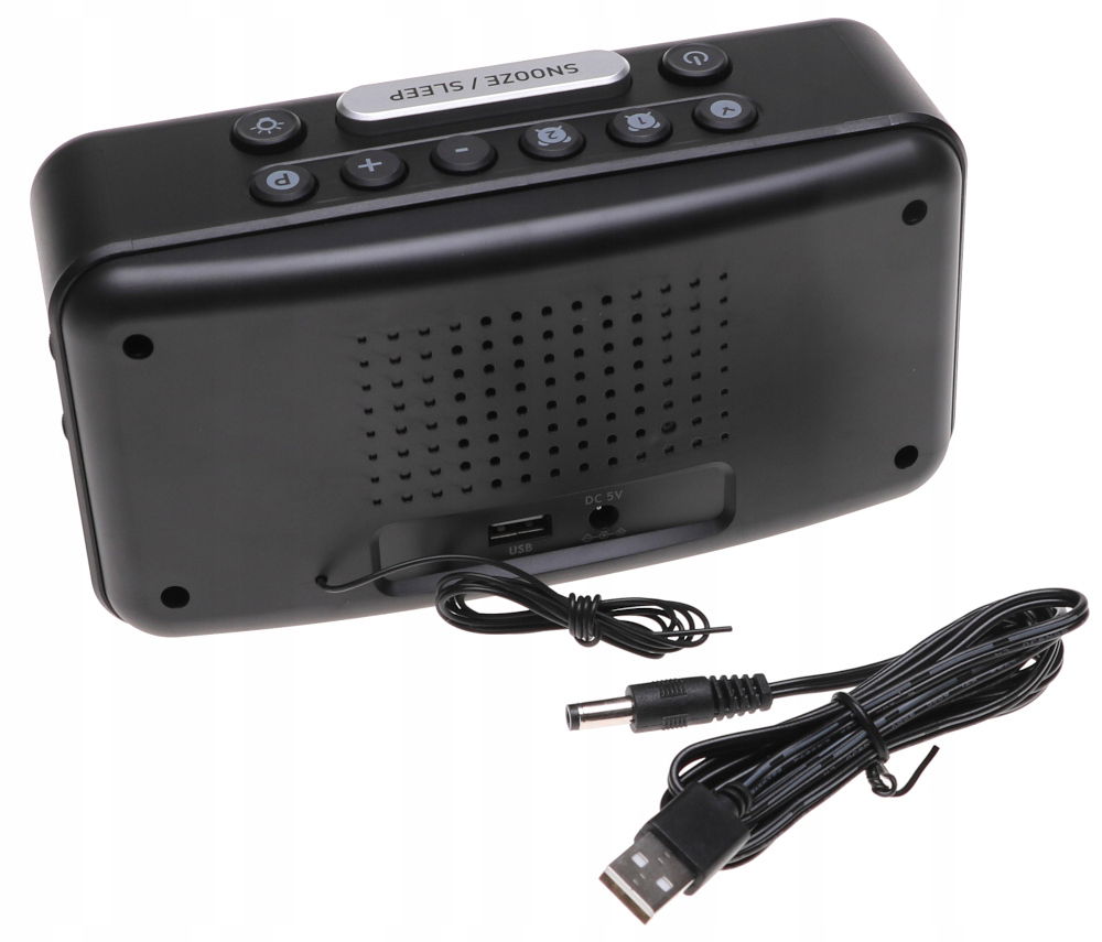 Posiada duży wyświetlacz LED, co ułatwi odczytanie godziny nawet w ciemności i z dalekiej odległości. Obudzi sygnałem dźwiękowym lub ulubioną stacją radiową.