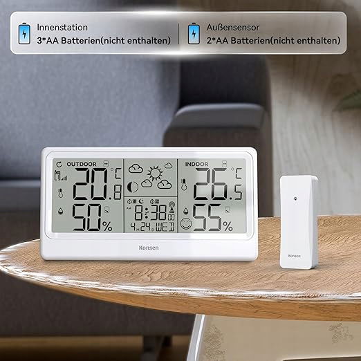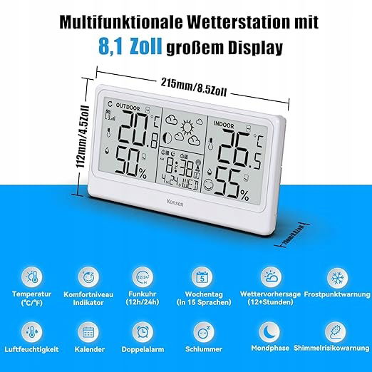 Konsen Radiowa stacja pogodowa z czujnikiem zewnętrznym DCF