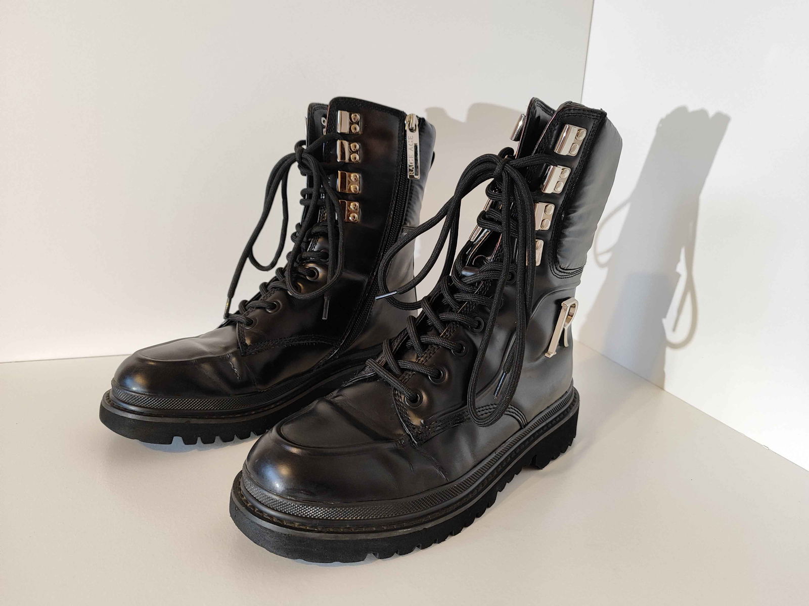 - Dodatki - Metalowe detale z logo „R” w perfekcyjnym stanie, bez zarysowań.