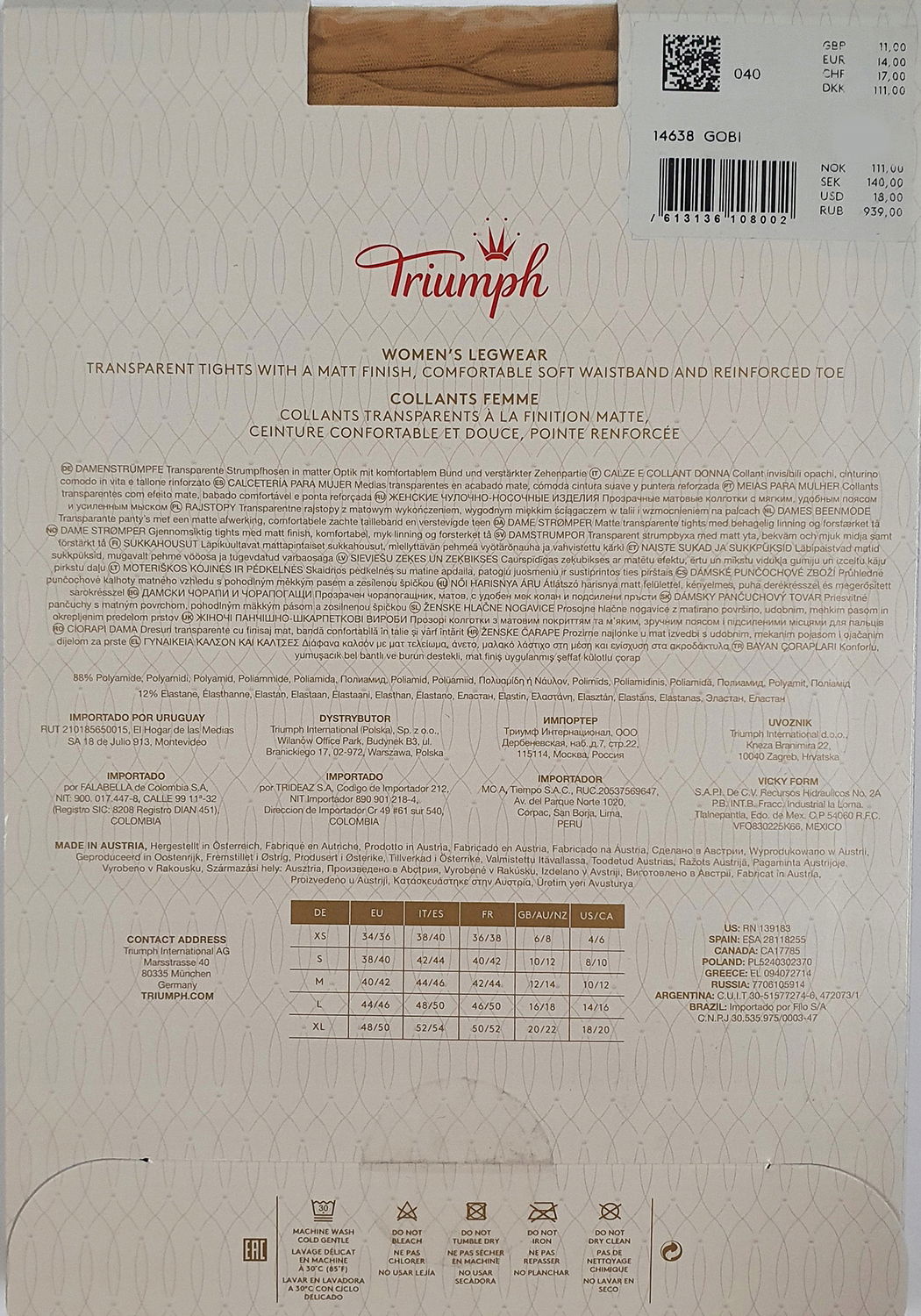RAJSTOPY DAMSKIE S 38/40 Triumph Matt 20 sheer Tights Gobi brazowy