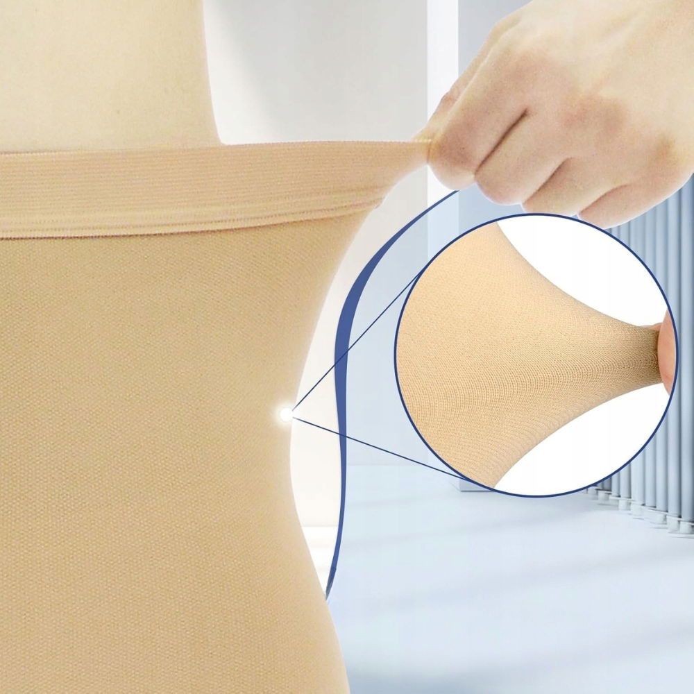 Elastyczny pas w talii dopasowuje się do sylwetki, nie powodując dyskomfortu ani nieestetycznych śladów na skórze. Odpowiednio dobrany rozmiar gwarantuje pełną wygodę, brak ucisku na brzuch i swobodę ruchów. To rajstopy, które łączą skuteczność medyczną z elegancją i codziennym komfortem.
