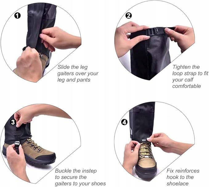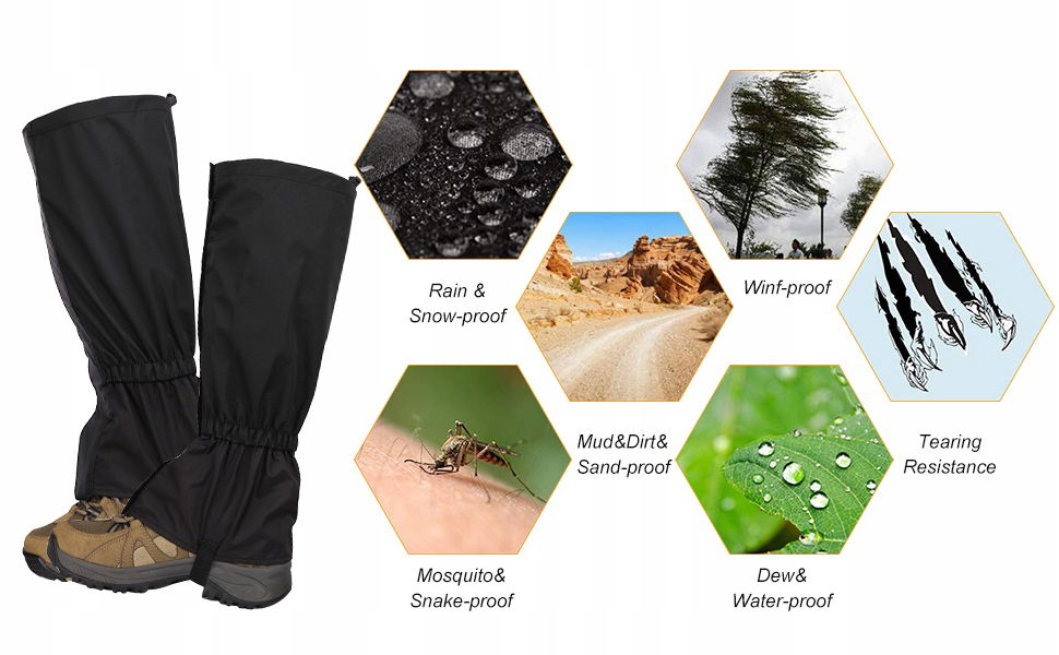 - Funkcja: ochraniacze na nogi do wędrówek są oddychające, przeciwporostowe, wodoodporne, odporne na śnieg, wiatroszczelne i owady. Bardzo odpowiednie dla mężczyzn i kobiet. Materiały wysokiej jakości