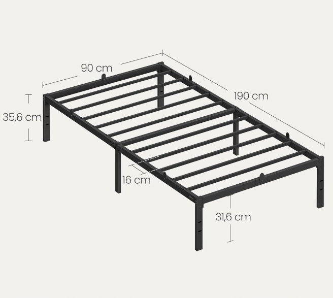 Rama łóżka 90 x 190 z metalową podstawą, metalowa rama VASAGLE RMB131B01