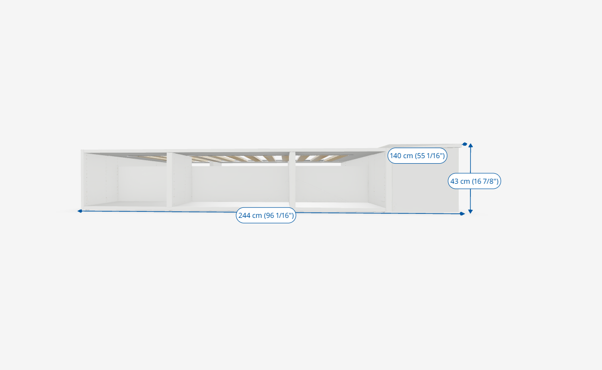 Głębokość schowka: 40 cm, Długość: 244 cm, Szerokość: 140 cm, Wysokość: 43 cm