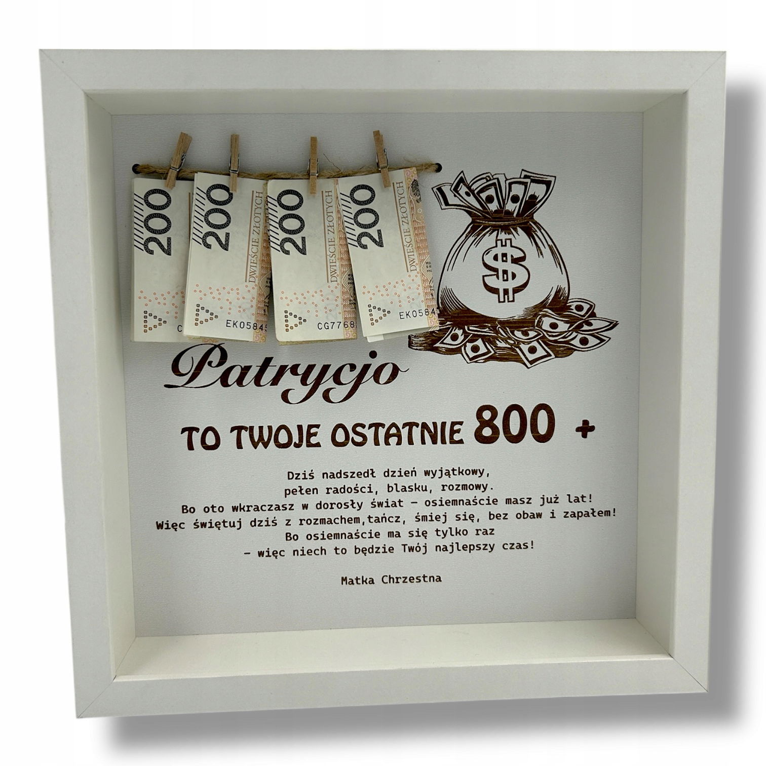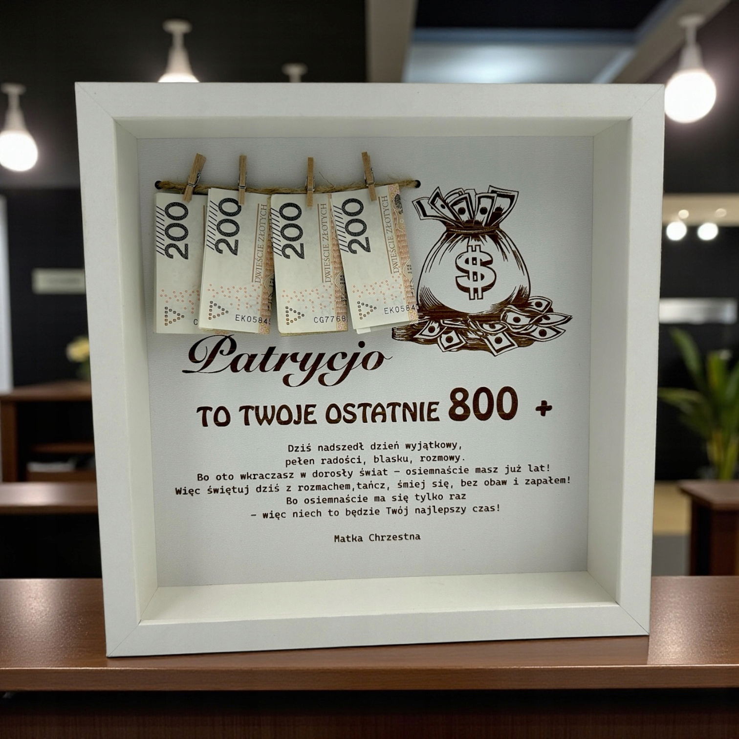 Ramka 3D – „Twoje ostatnie 800+” – prezent na 18 urodziny
